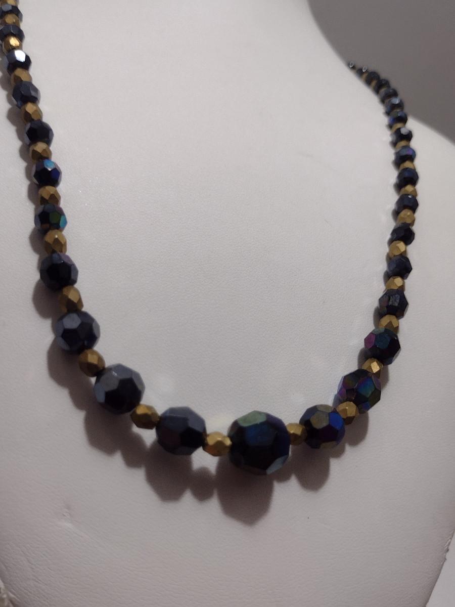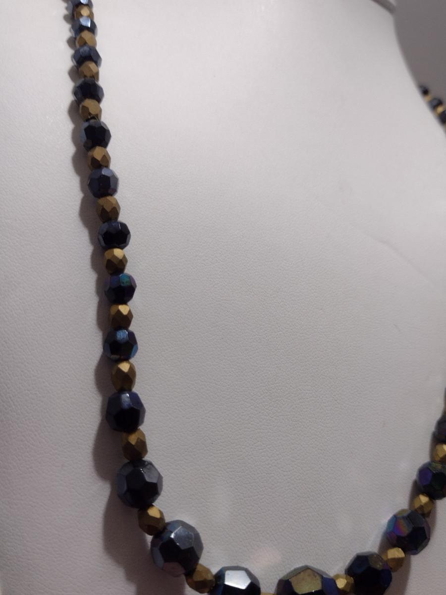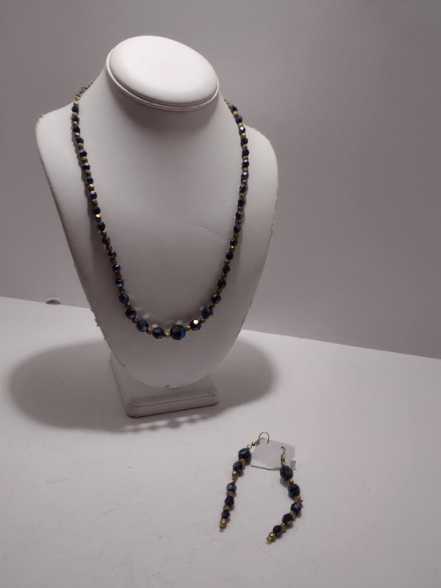 Aurora Borealis Necklace and Earrings- Black and Gold (#43)