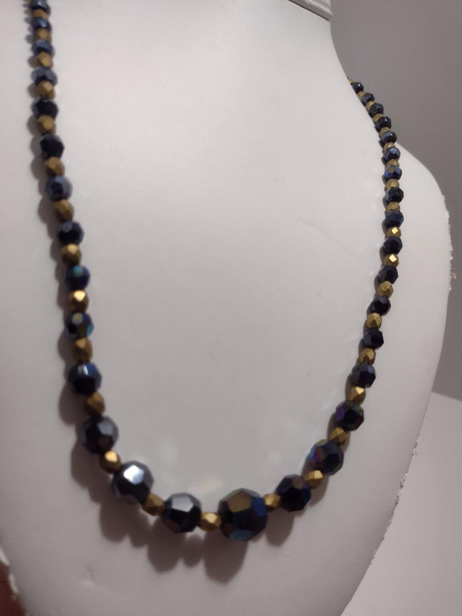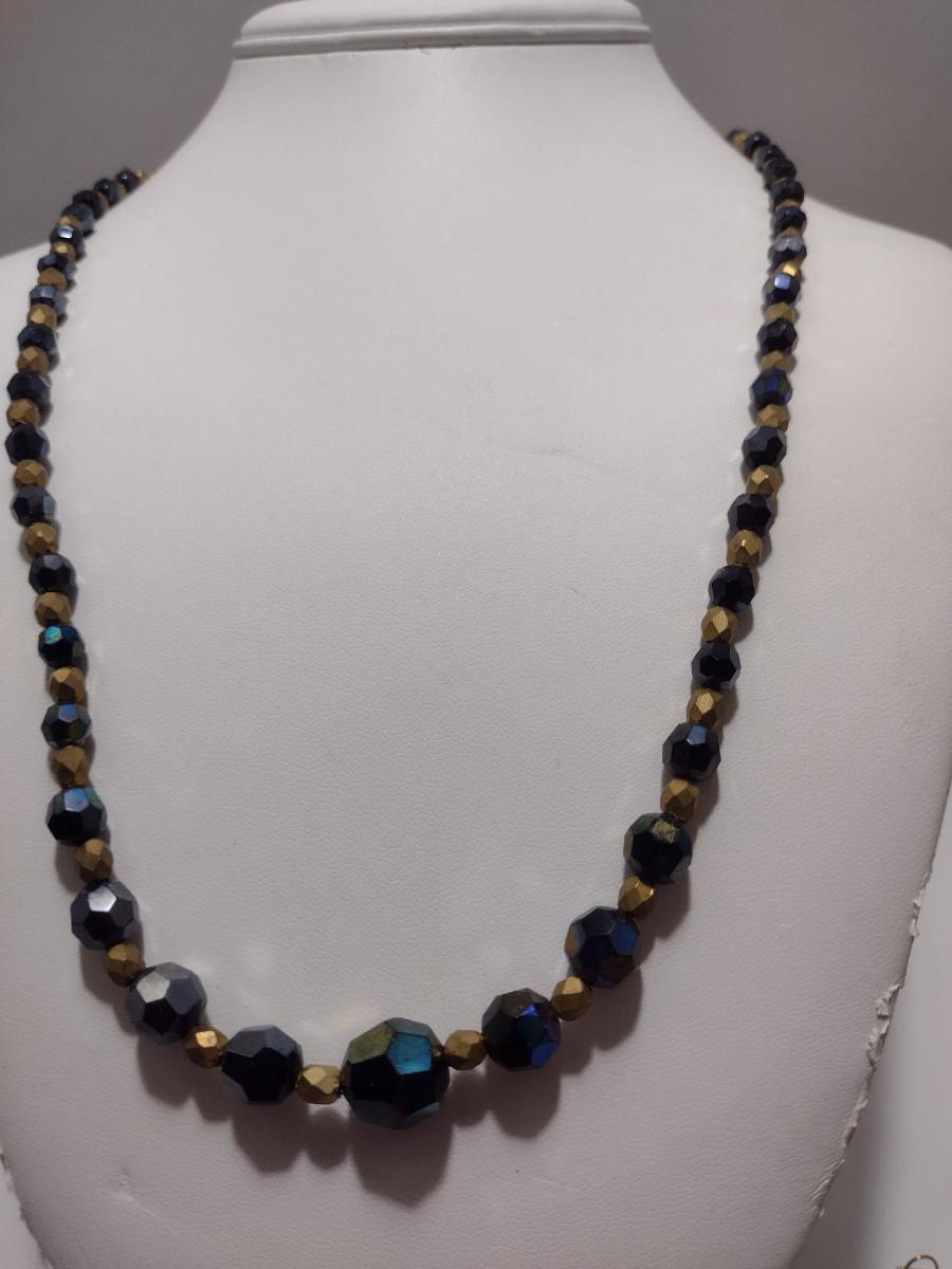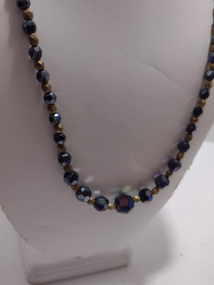 Aurora Borealis Necklace and Earrings- Black and Gold (#43)