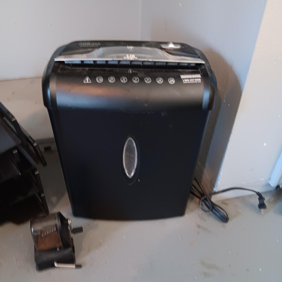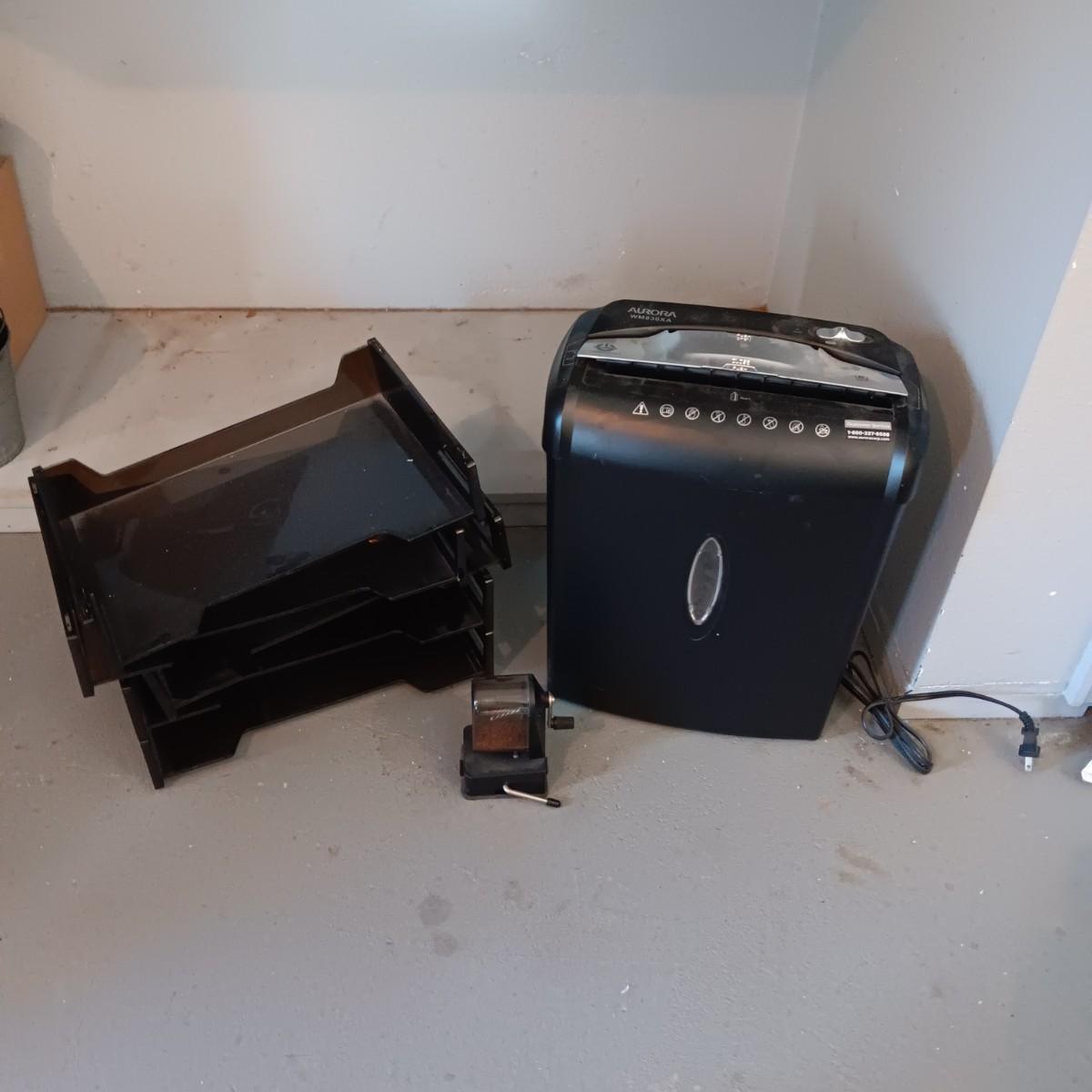 AURORA PAPER SHREDDER, STACKING FILE ORGANIZERS AND A PENCIL SHARPENER