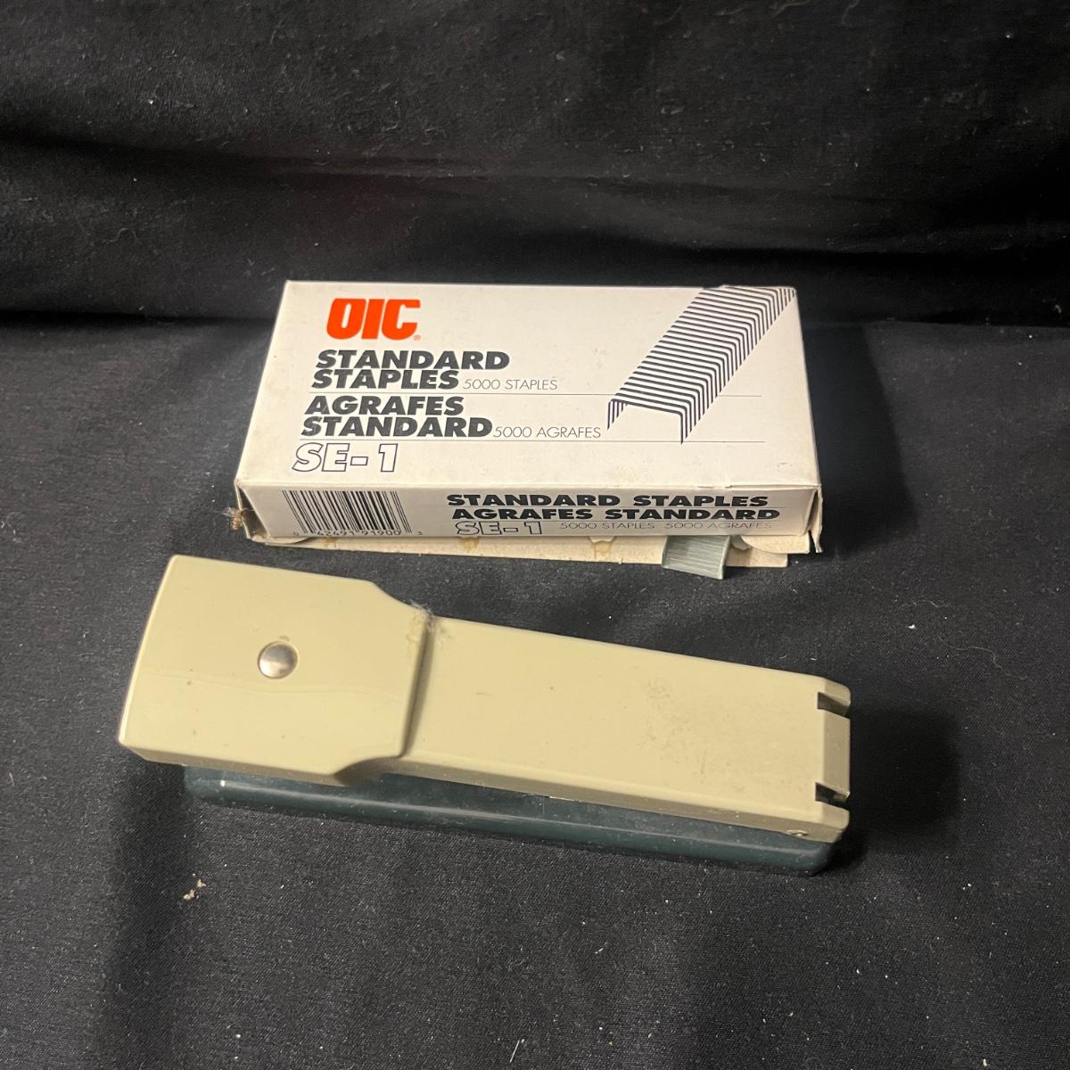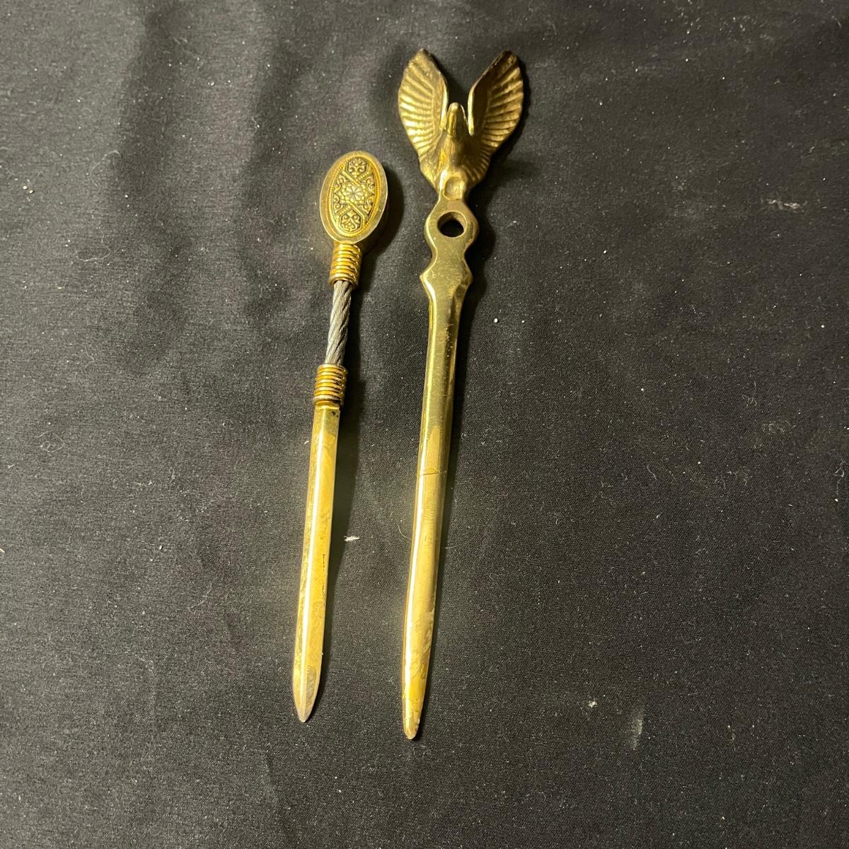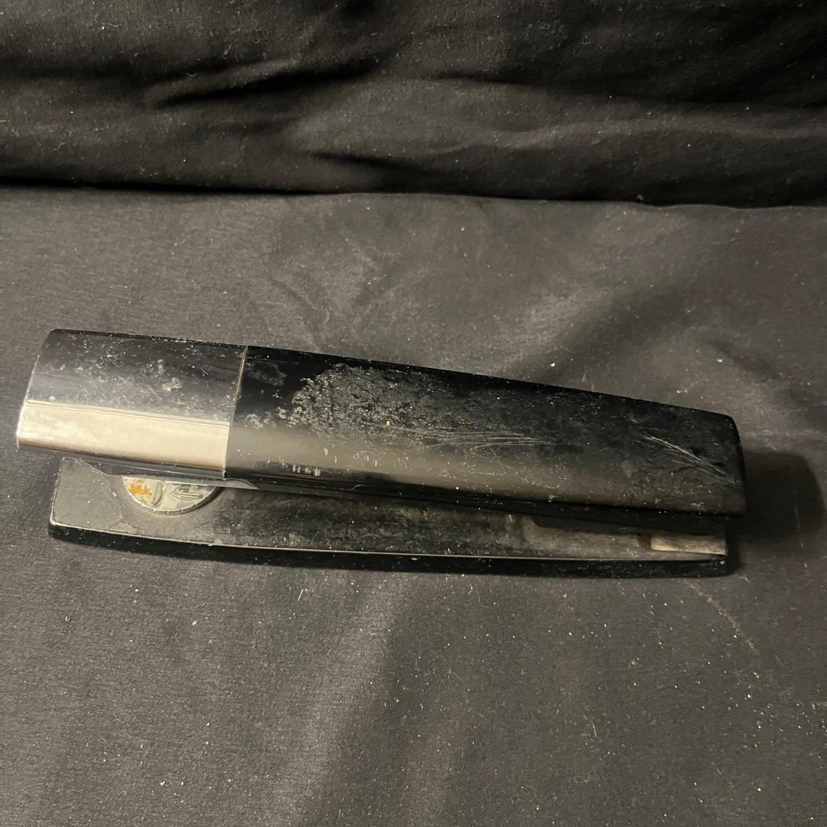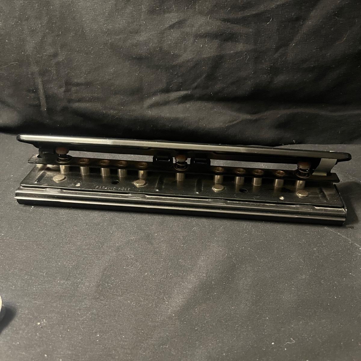 Lot includes an Aurora shredder, La Crosse atomic clock, two staplers, two Cross pens, brass letter opener and metal letter opener, triple hole punch and two metal 5” rulers. Shredder powered on when plugged in and measures 14” x 8” x 17”H.