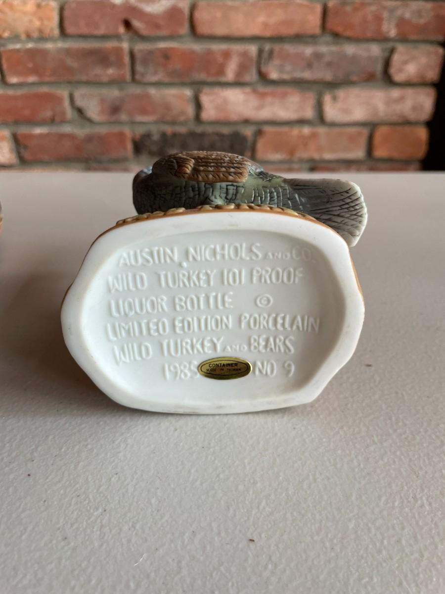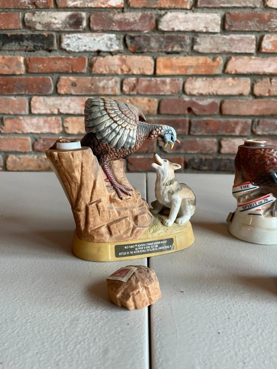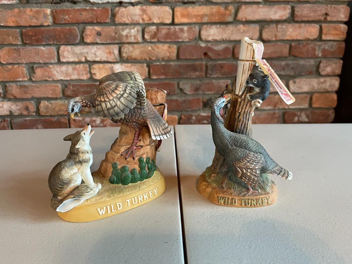Limited edition porcelain wild turkey liquor bottles. NO ALCOHOLIC CONTENT. Each one approximately 5 x 5.