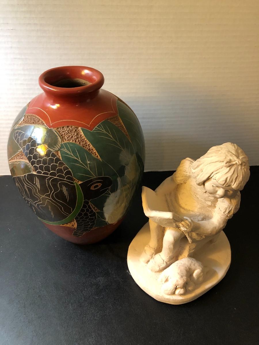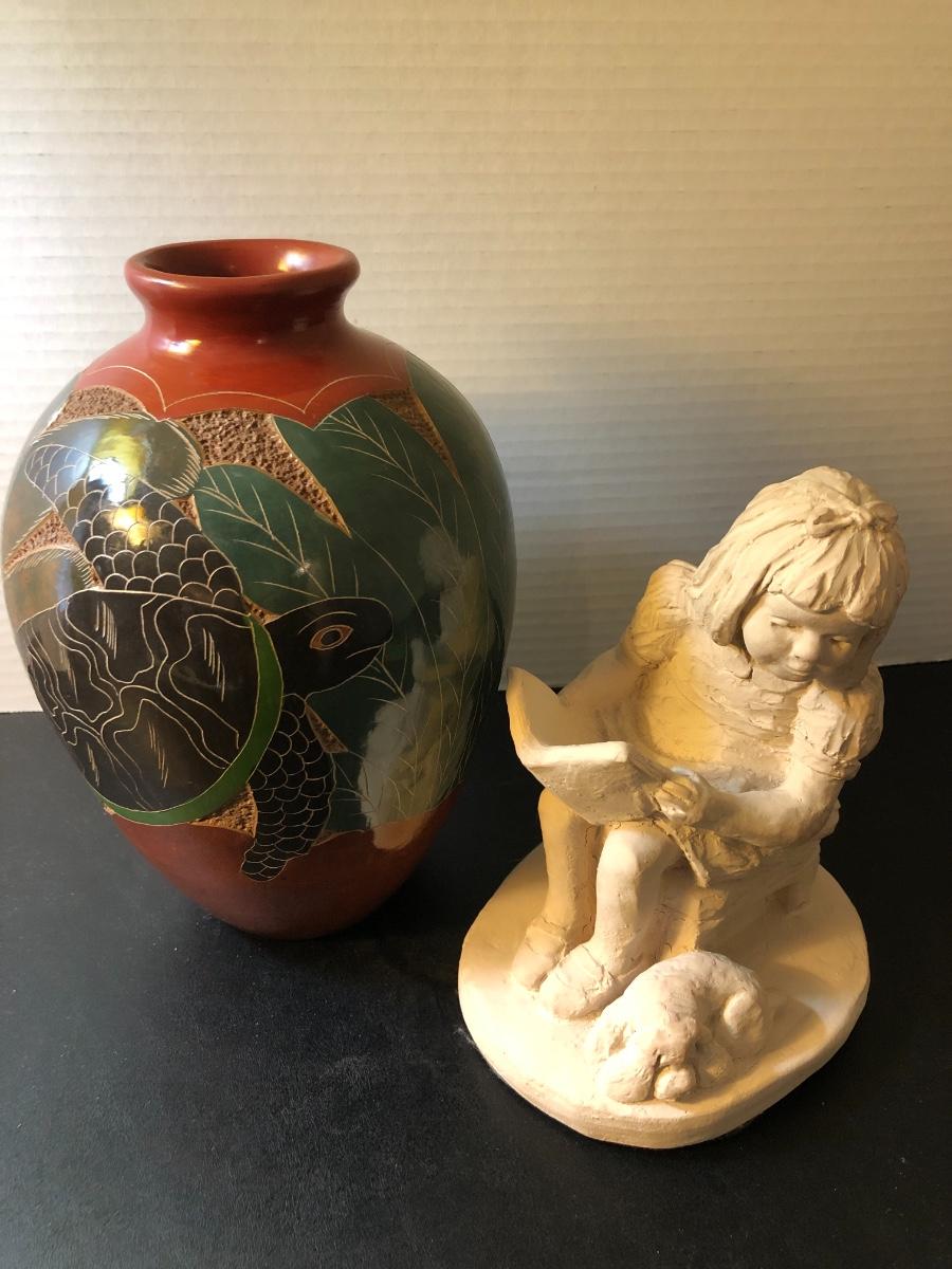 Austin Prod. Inc. Girl Statue & Edgar Noel Hand Carved Sea Turtle Vase -Lot 158