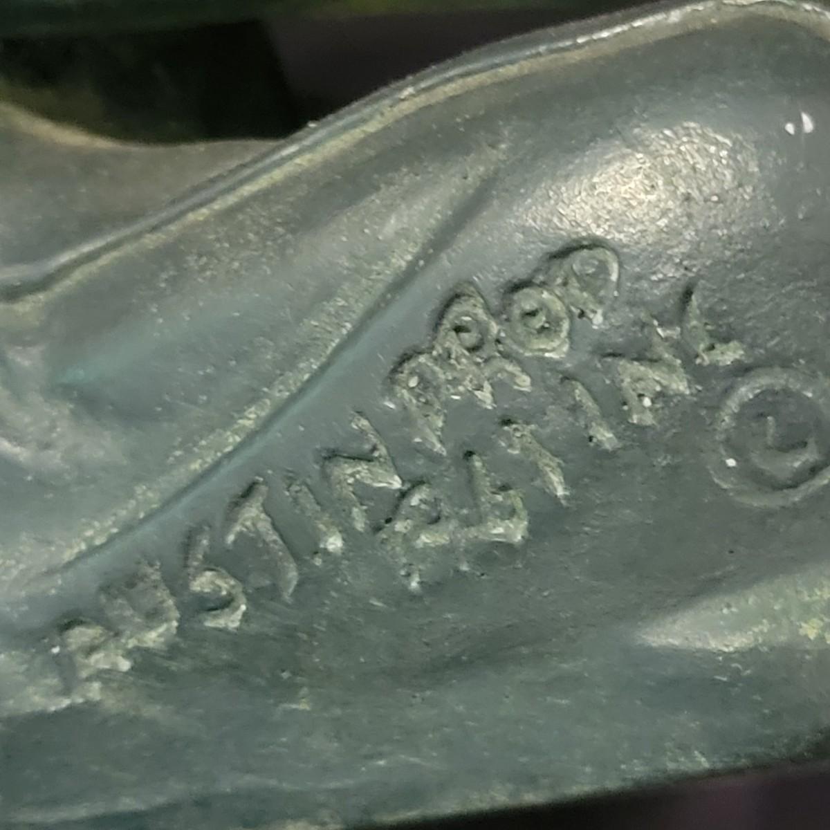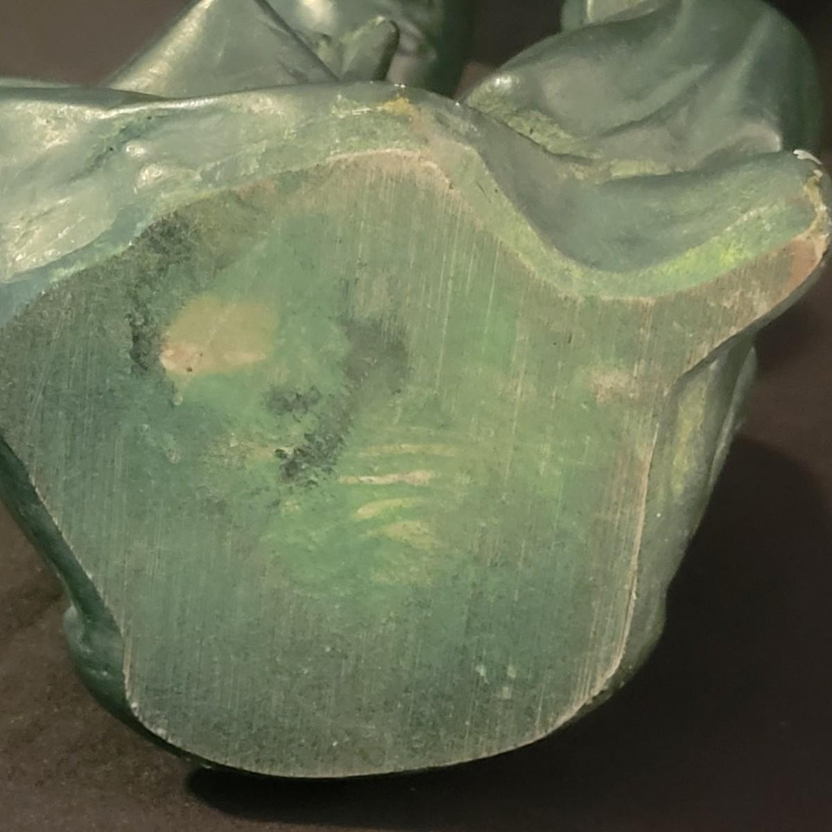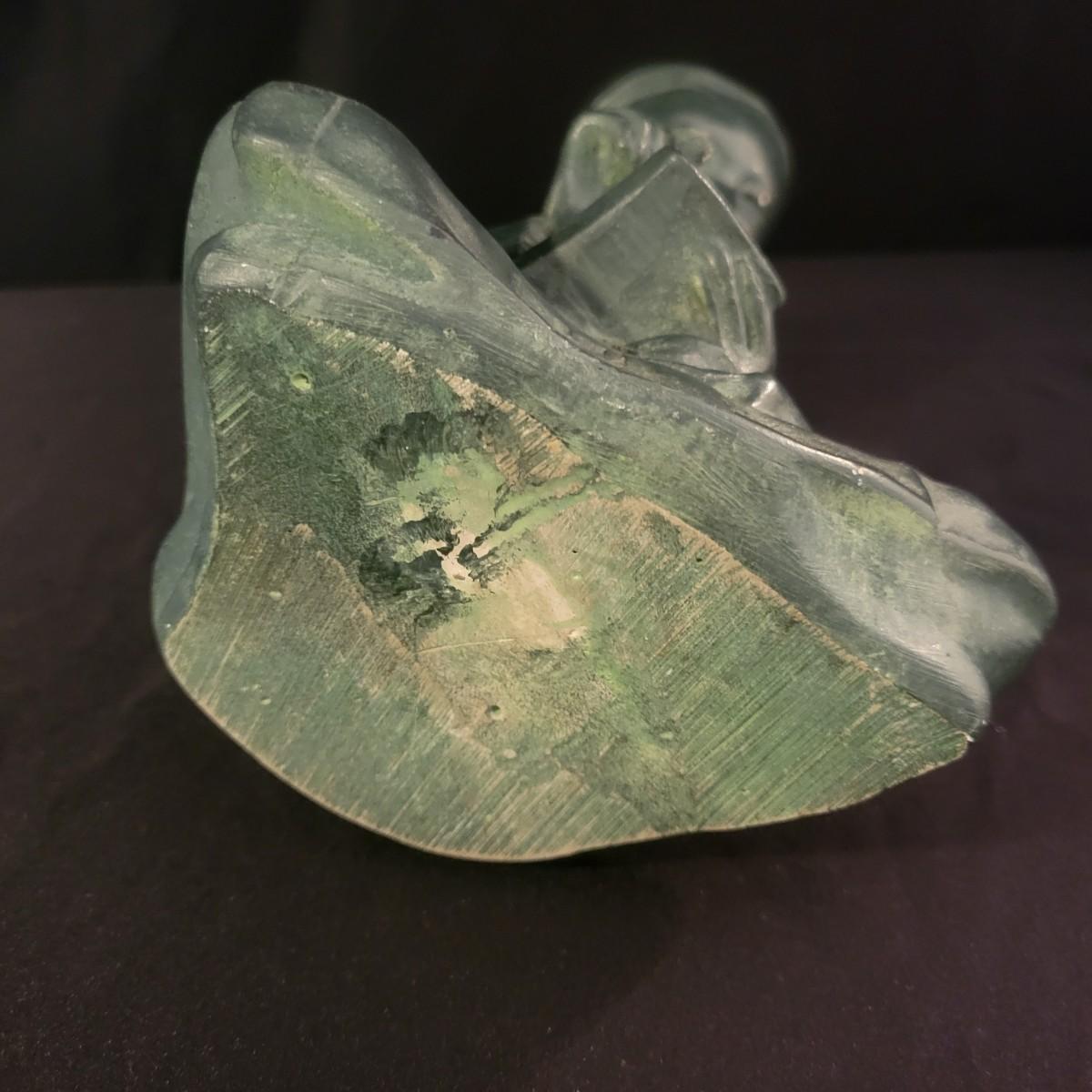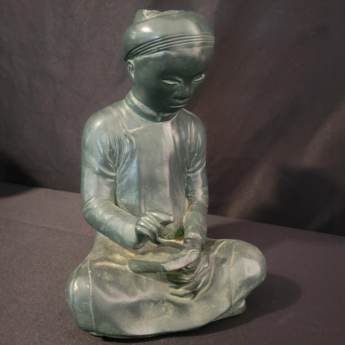A pair of sculptures that are cast pieces made of durastone and then given a green finish.. They were manufactured by Austin Prod Inc. These pieces depict two Asian men preforming calculations and measure approximately 6" x 4.5" x 8.5"H. One piece does have a minor blemish above the eye. Shipping available. Shipping art can be costly. We suggest contacting our preferred local shipping provider, Postage Express, with dimensions and getting an estimate before bidding: (828) 670-5501 or postageexpress@yahoo.com.
