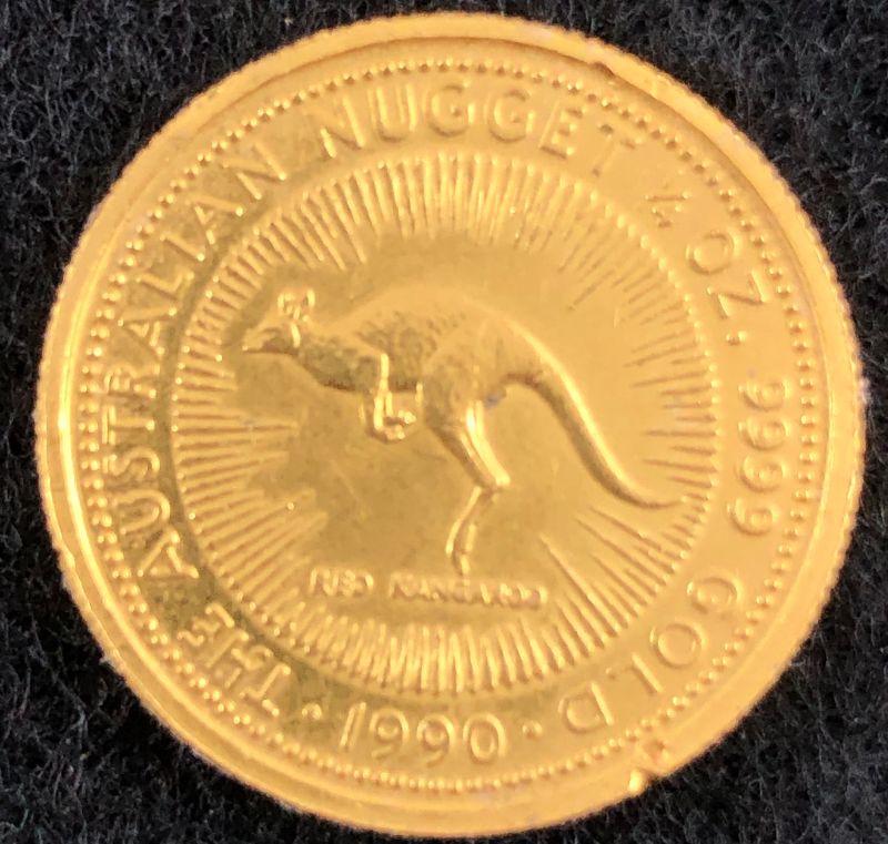 circulated condition 1/4 ounce pure gold 1990 kangaroo. Gram weight 7.8. Item/items are as pictured, unless otherwise noted in title all coins are in circulated condition. Shipping at a flat rate anywhere in the US. $3.95 for first item $1 more per item after that, 12 or more items ships for $15. All shipped items must be paid for through PayPal