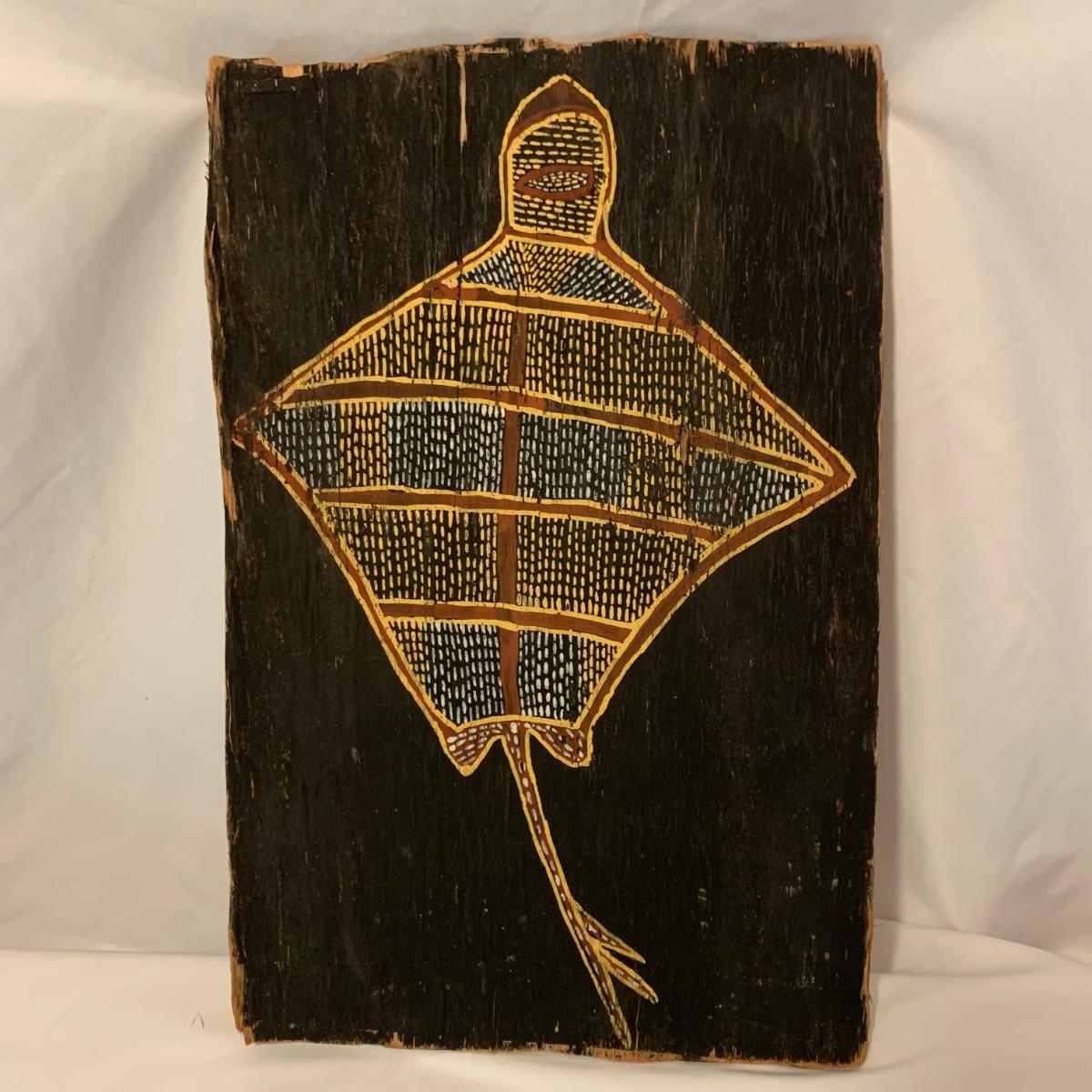 Australian Aboriginal Stingray Art on Bark (LR-DW)