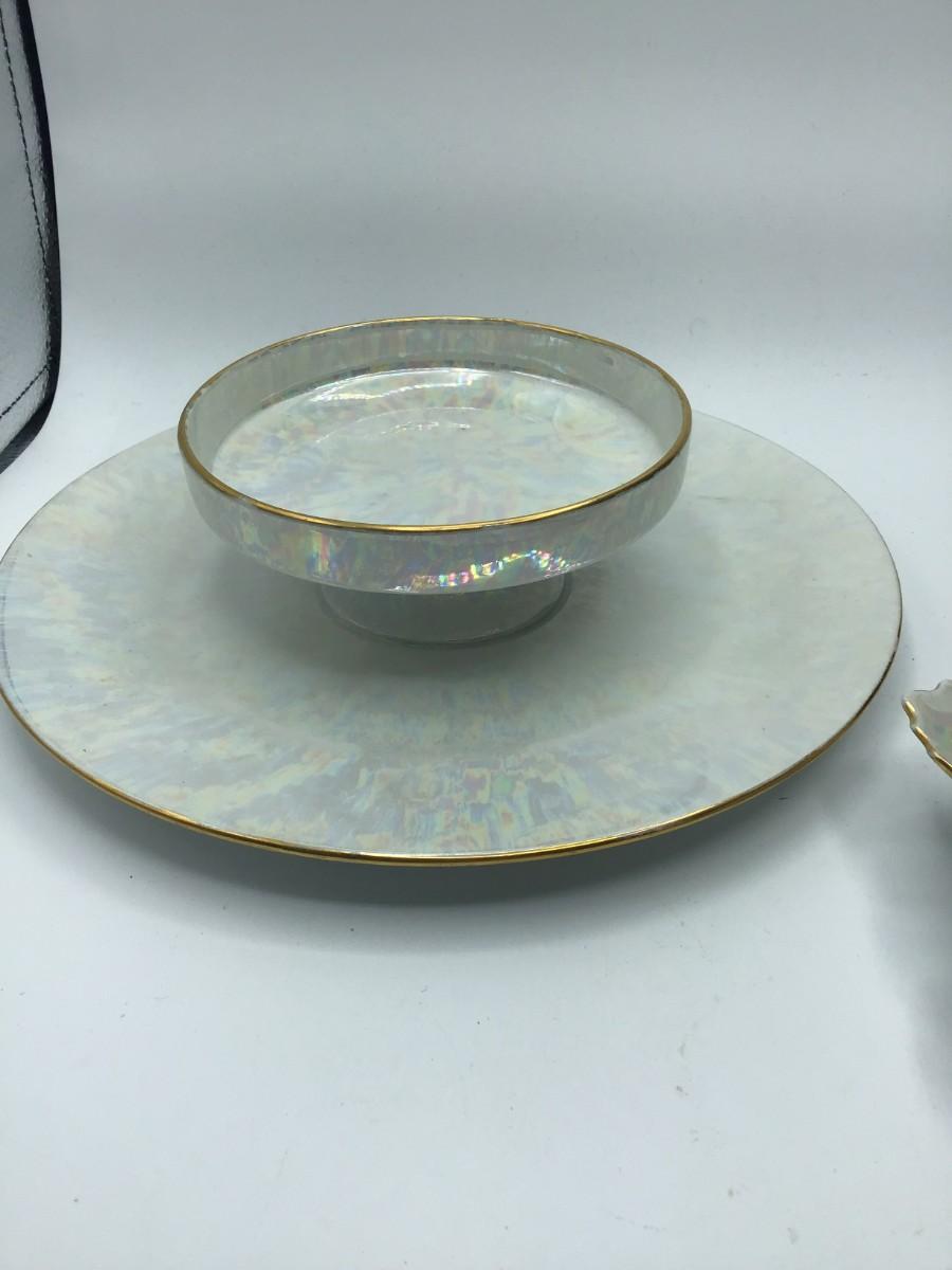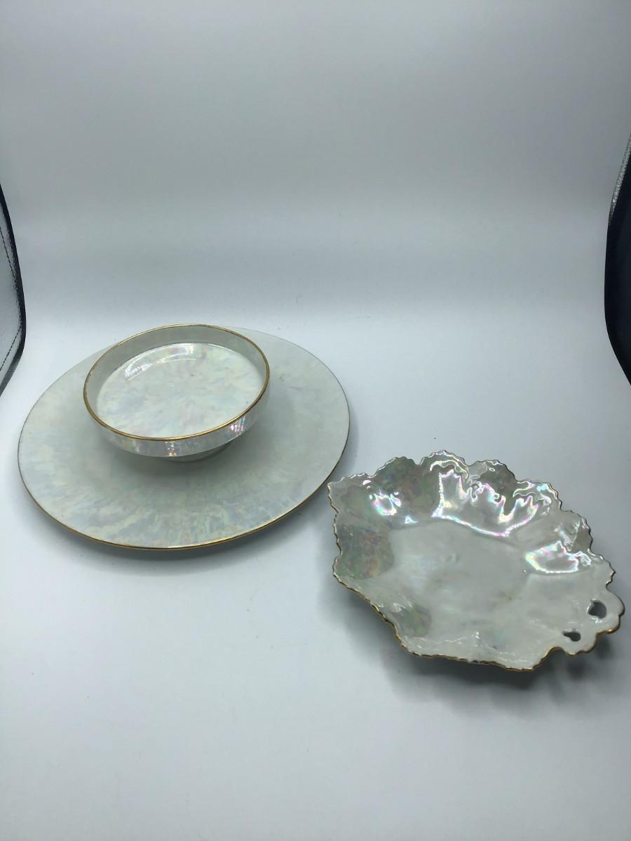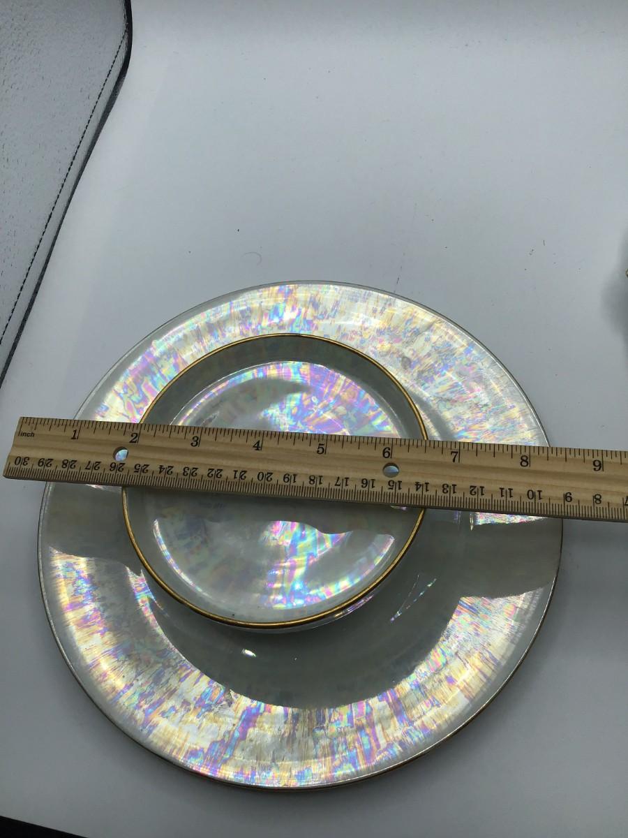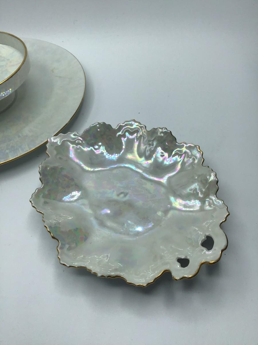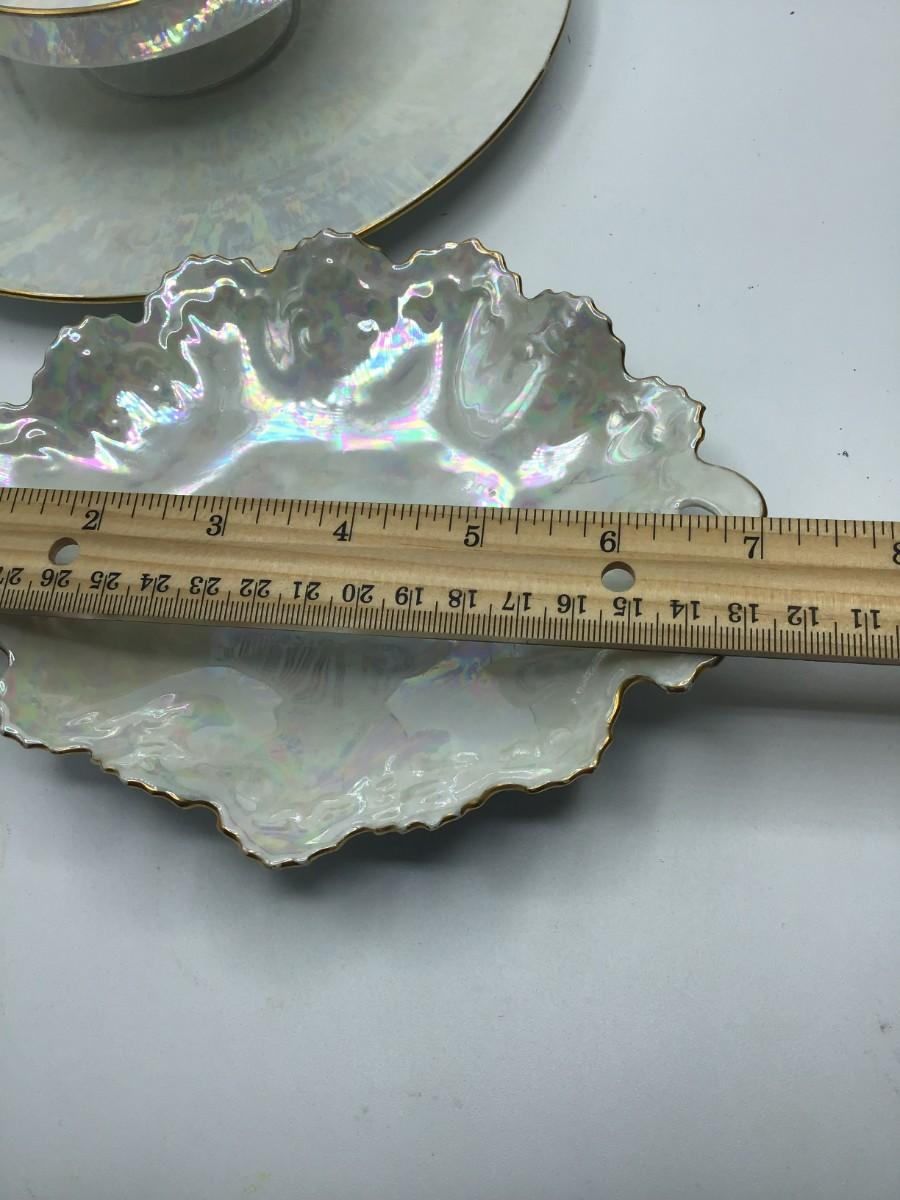 One piece is marked and the other is not; Leaf approximately 7" wide; Chip and dip approximately 9" wide; Dip is not removable from chip and dip