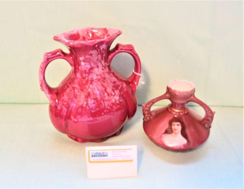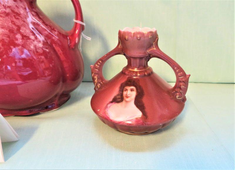 Austria L53 Vase Vintage Lady Portrait Gold Gilt Scallop, Footed Vase Rose