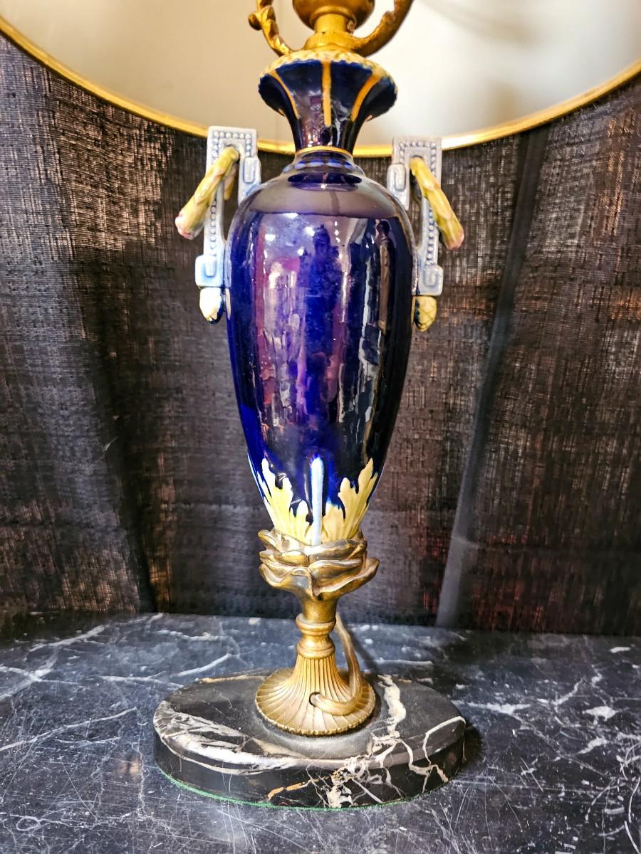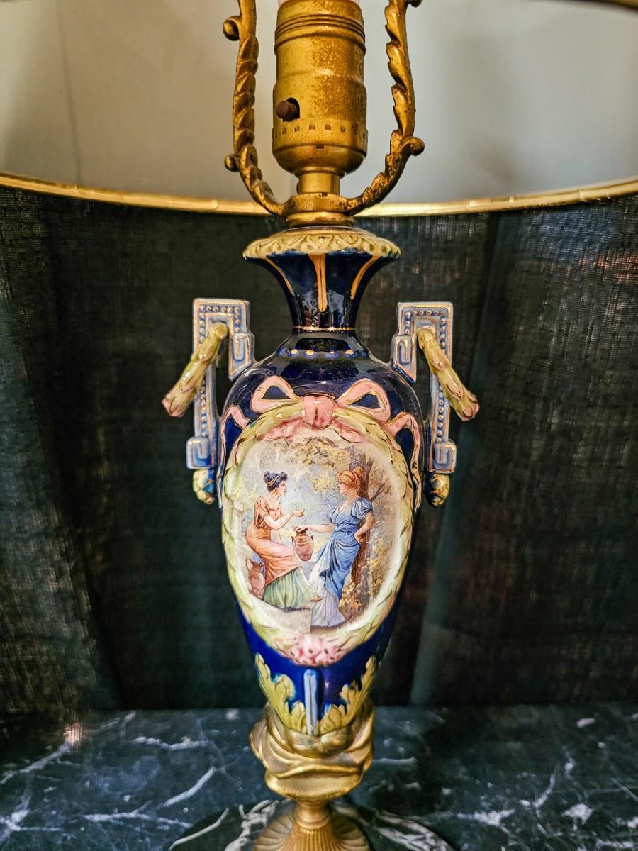 Cobalt blue with scene of ladies, 6"W x 21"H