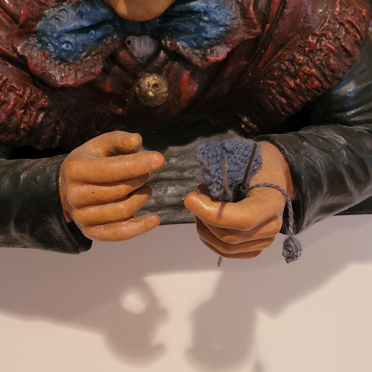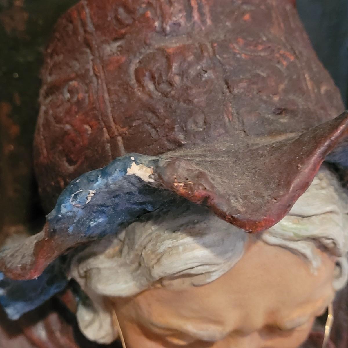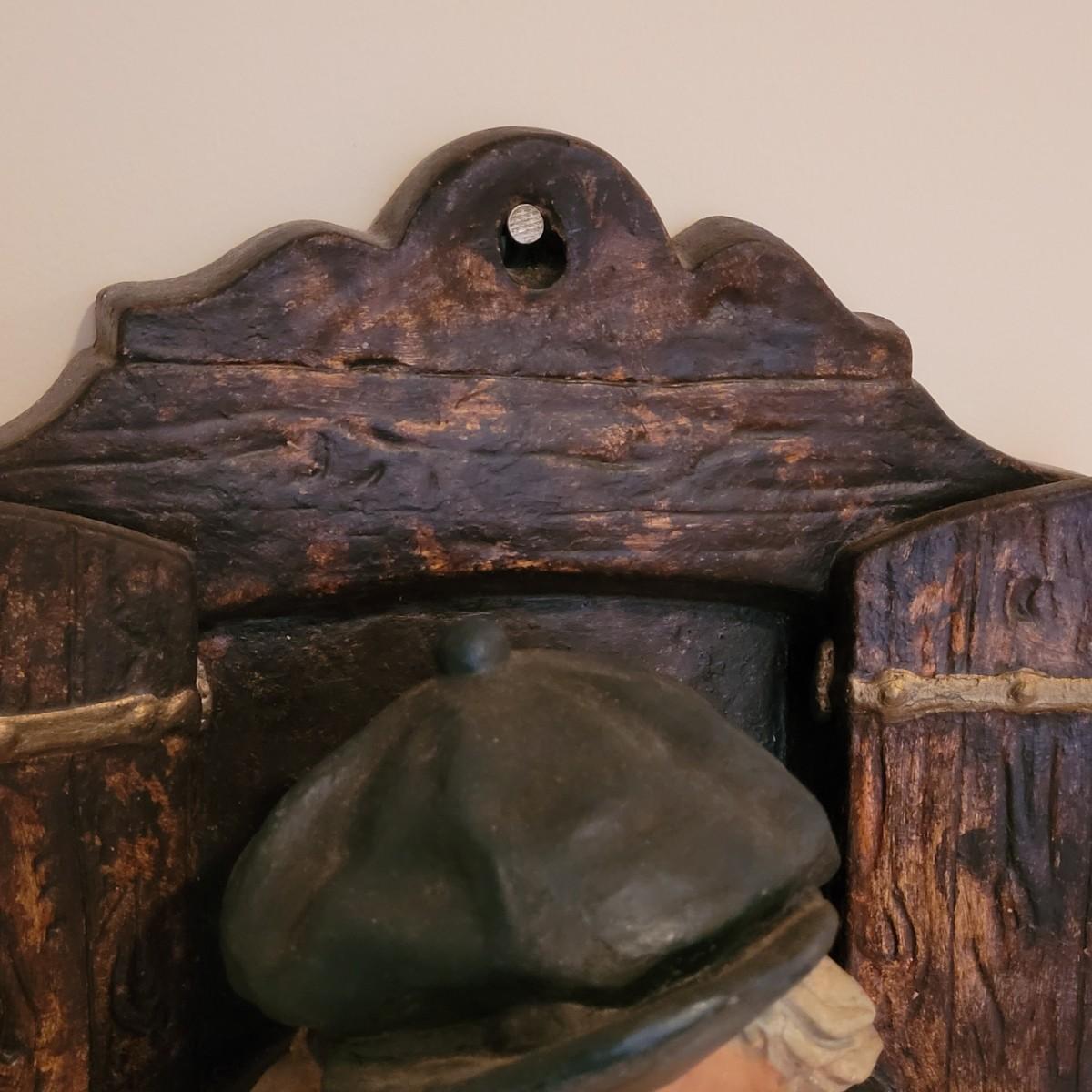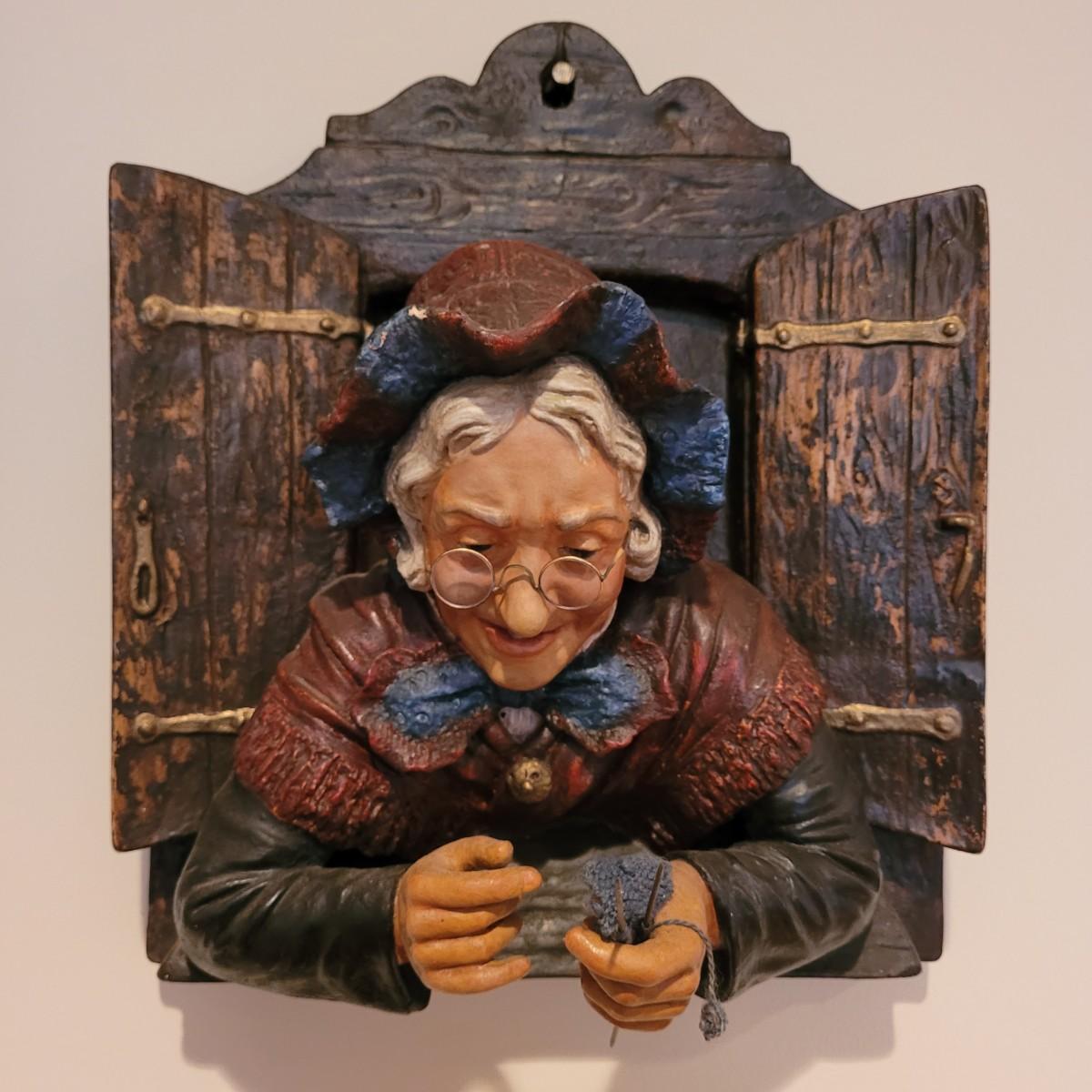 Two Terra cotta sculptures of Austrian origin depicting an elderly man and woman looking out of a window. The man is reading and the woman is knitting. The lenses of the glasses are intact, making these pieces more rare than others. The woman has a small damage spot on her hat. And the gentleman has a blemish on his sleeve and a bit of damage in his finger. Homeowner states the world's fair as place of origin. Individually, the frames measure 15" x 6" x 15"H. Items are heavy. Shipping available. Shipping certain items can be costly. We suggest contacting our preferred local shipping provider, Postage Express, with dimensions and getting an estimate before bidding: (828) 255-9250 or shipping@postageexpressnc.com