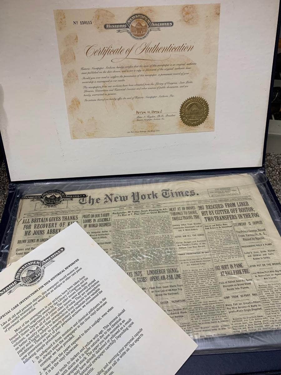 Authentic 1929 New York Times Newspaper