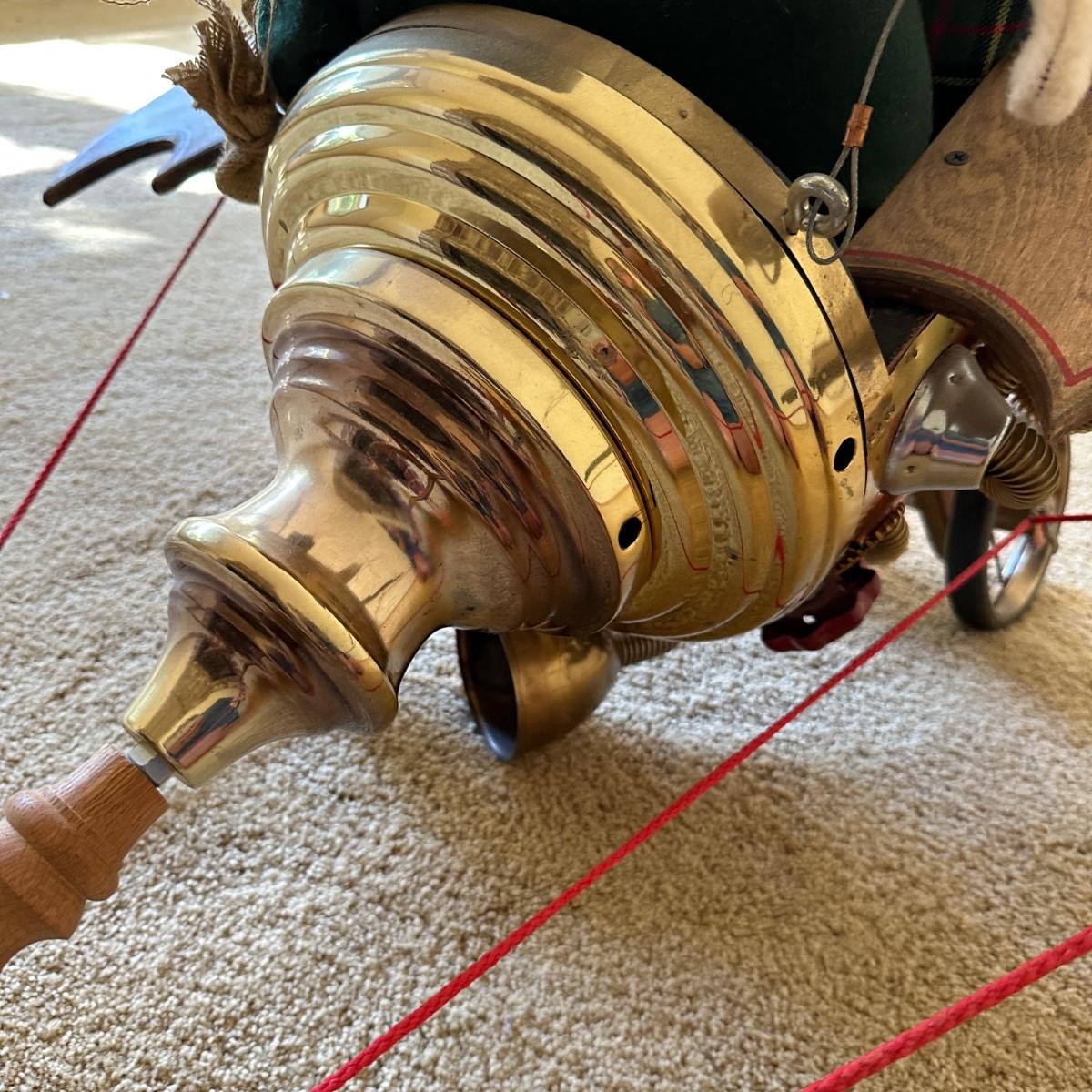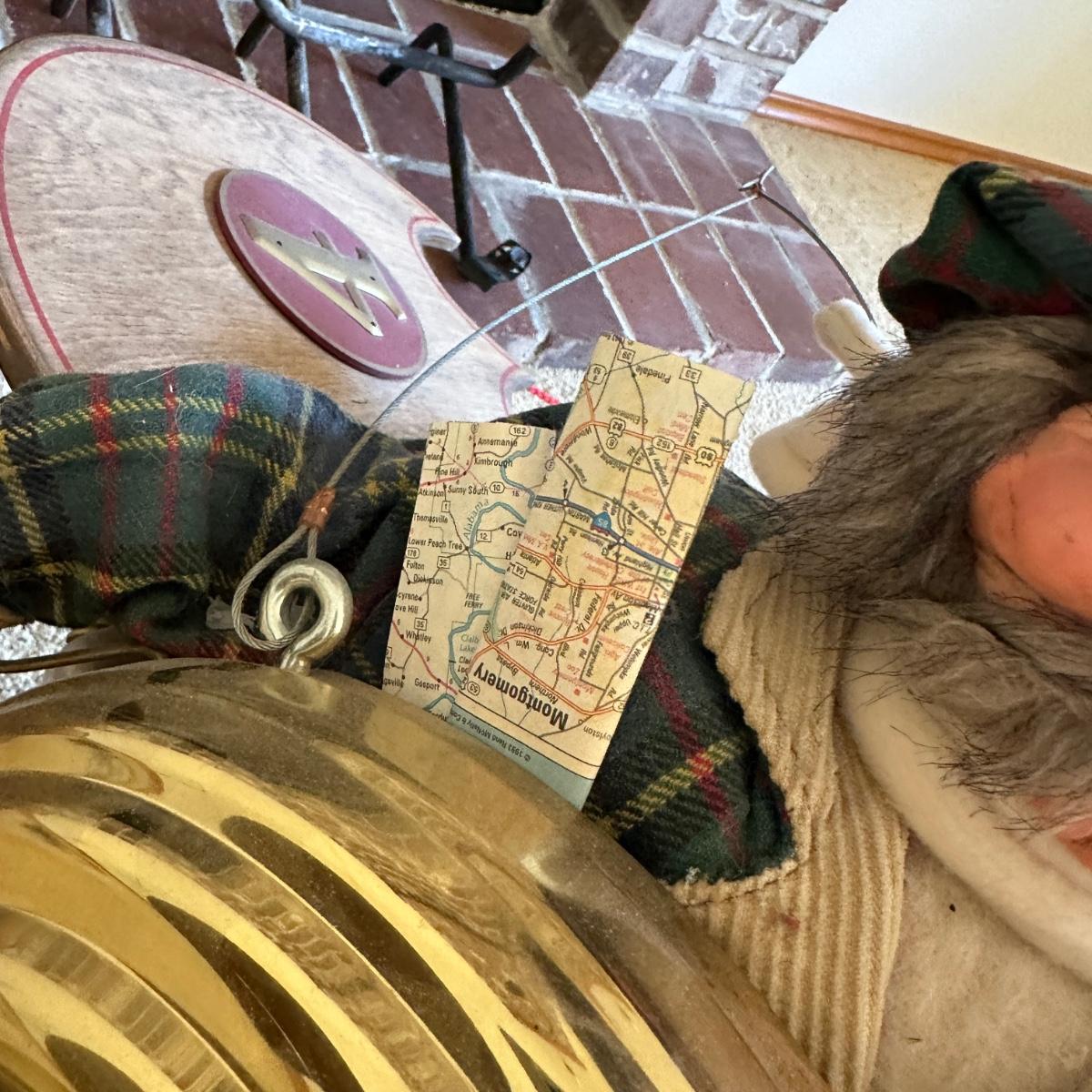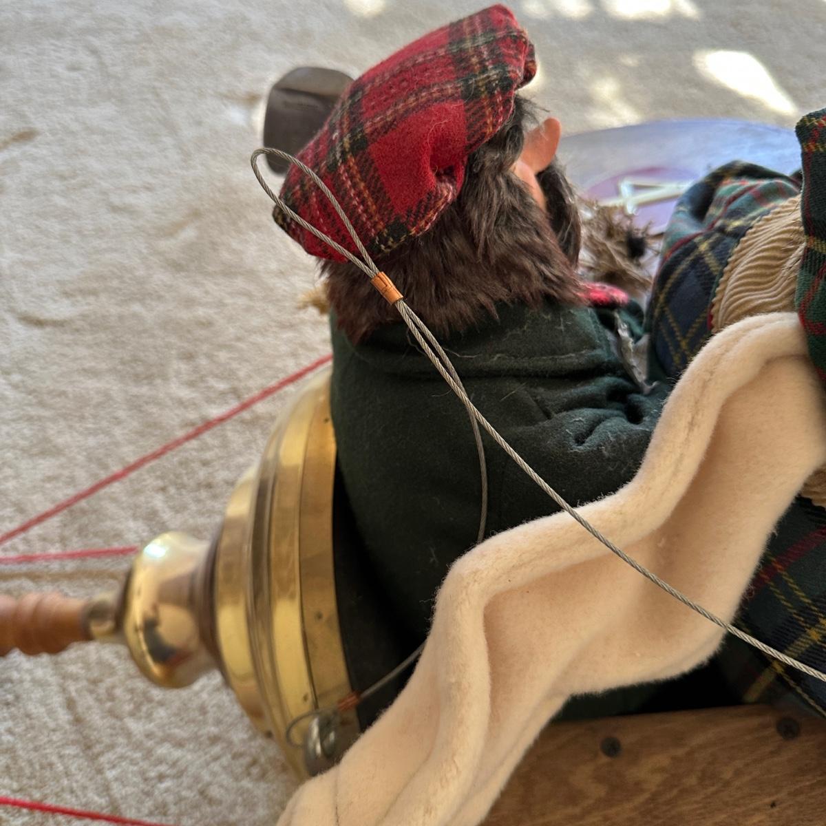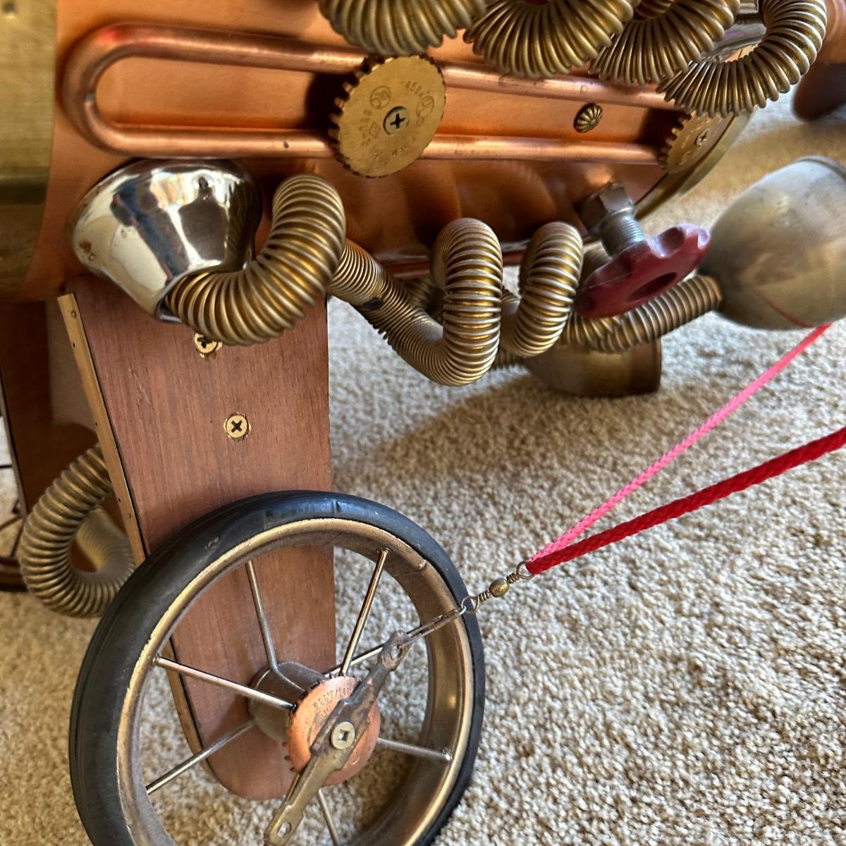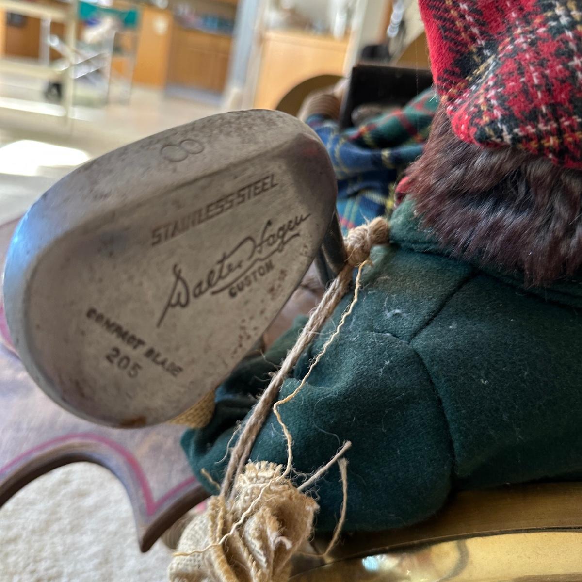 This authentic, and one-of-a-kind Al Kidwell creation features The Wright Brothers on the way to play their next round. Propeller spins and this piece is meant to be hung. 25 inches high and 46 inches long.. One brother wears a green plain jacket and holds a map the other wears a green jacket and carries a #8 golf club