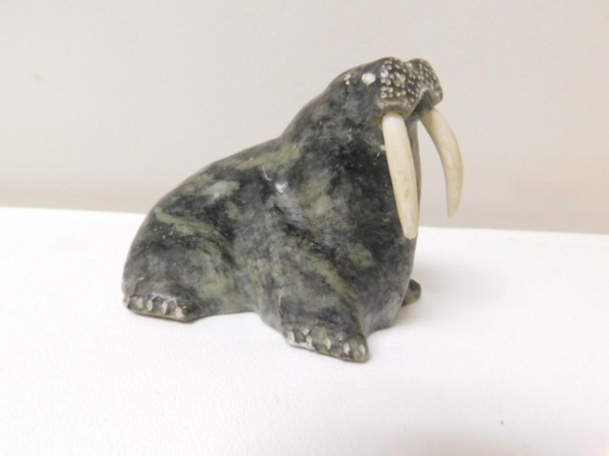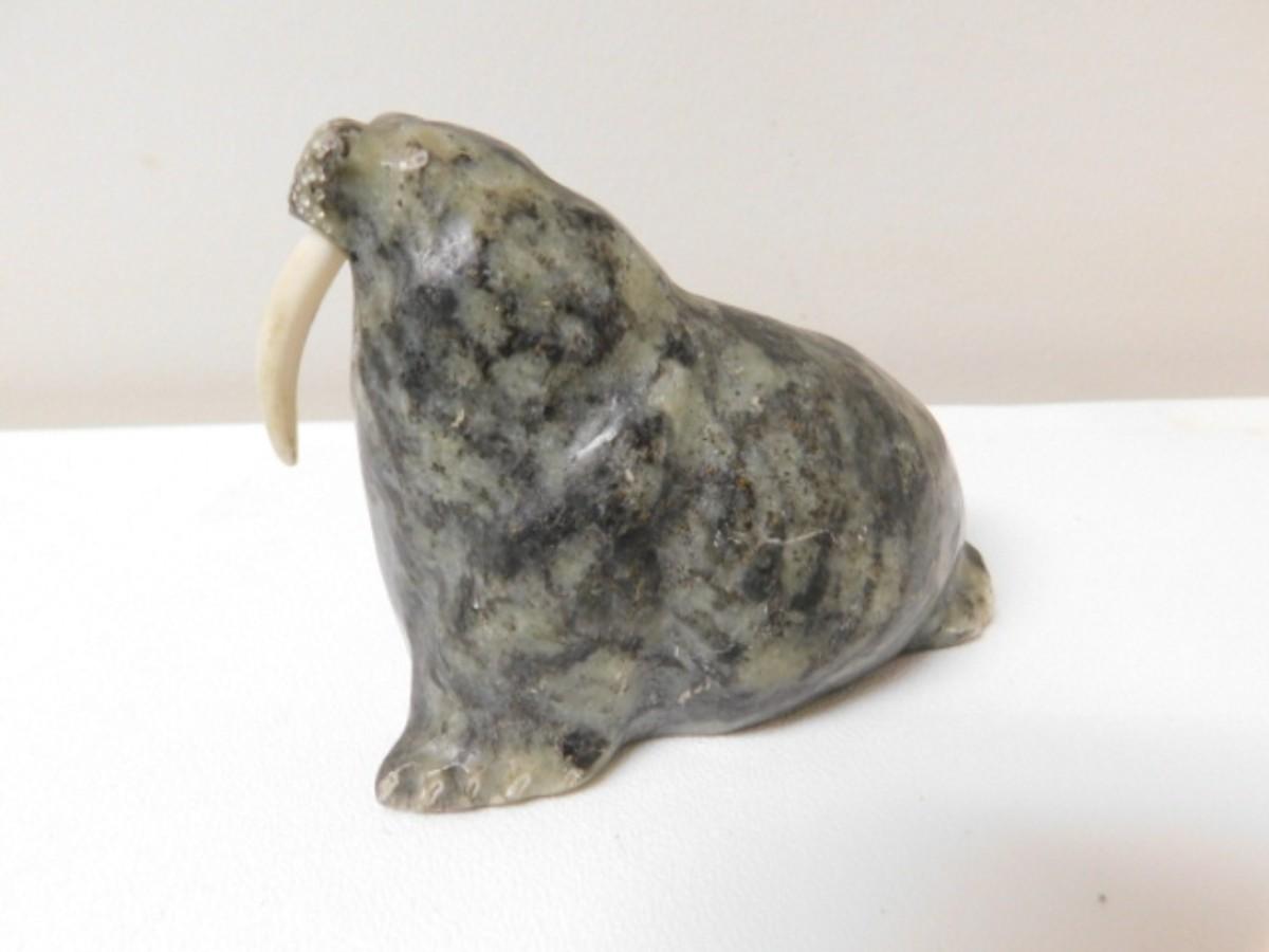 Authentic Alaskan Hand Carved Art Stone Walrus