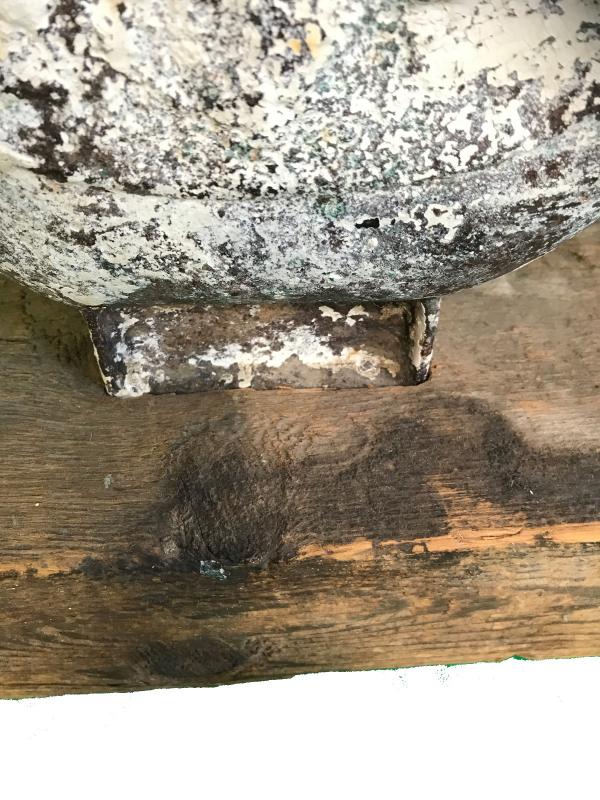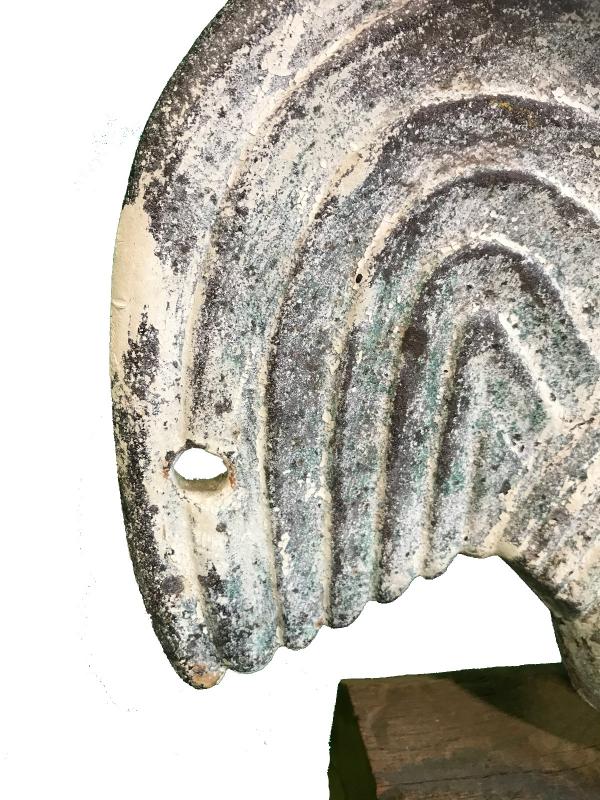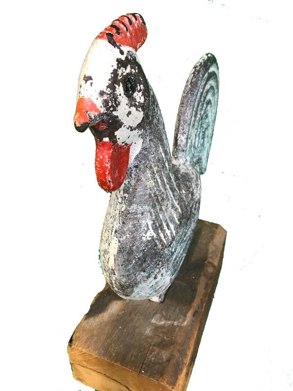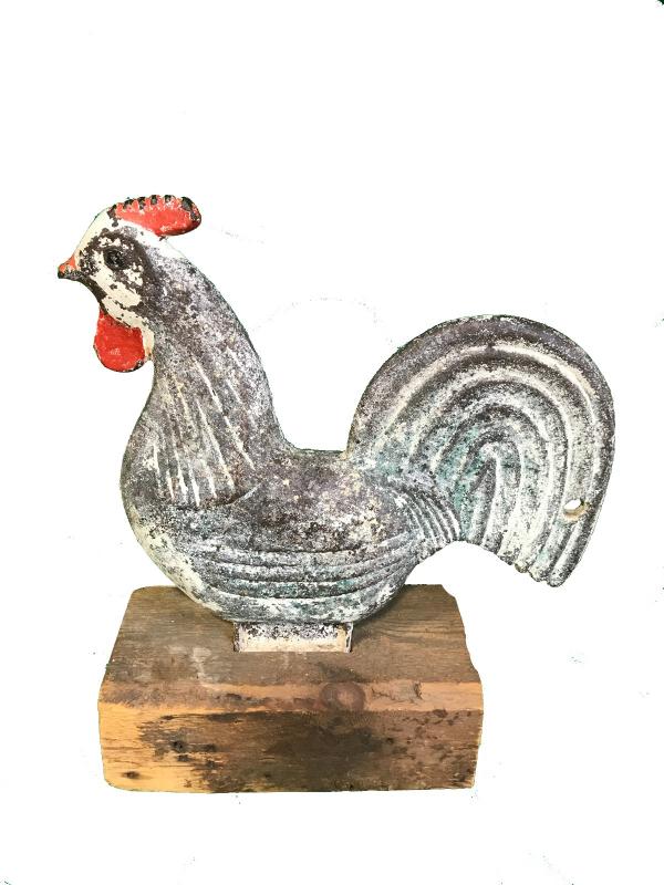 Up for Auction is a Wonderful Authentic Antique Iron Rooster Windmill Weight on Wooden Stand. This piece has it's original paint with hole on the tale. Extremely Heavy!