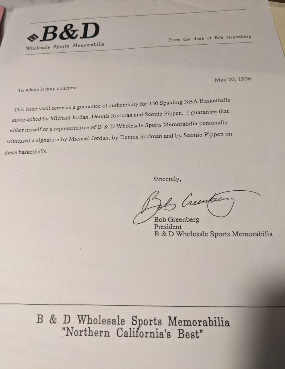 Authentic Autographed Basketball of Michael Jordon, Scottie Pippen, & Dennis Rodman