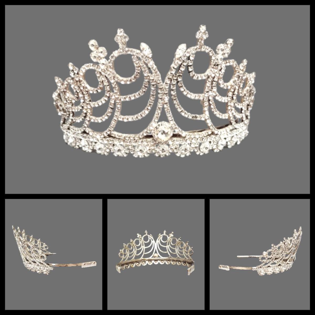 - Silver & Rhinestone Tiara - 6.5"W x 3.5"H
