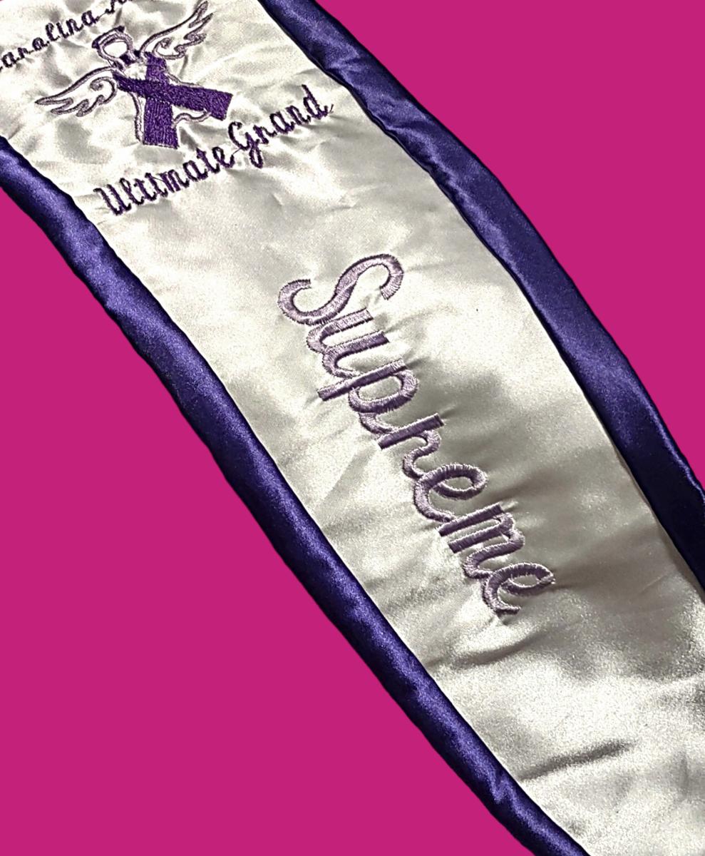 - Purple & Lavender Embroidered Words - "Carolina Angels Ultimate Grand" & "Supreme"