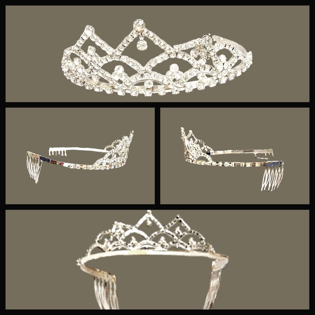 - Silver & Rhinestone Tiara - 5"W x 1.75"H