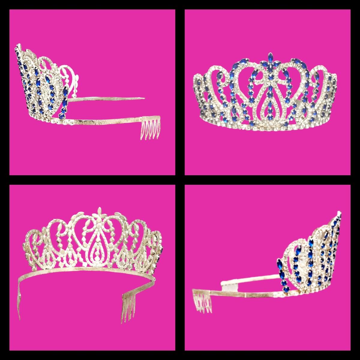 - Silver Tiara w/ Clear & Blue Rhinestones-