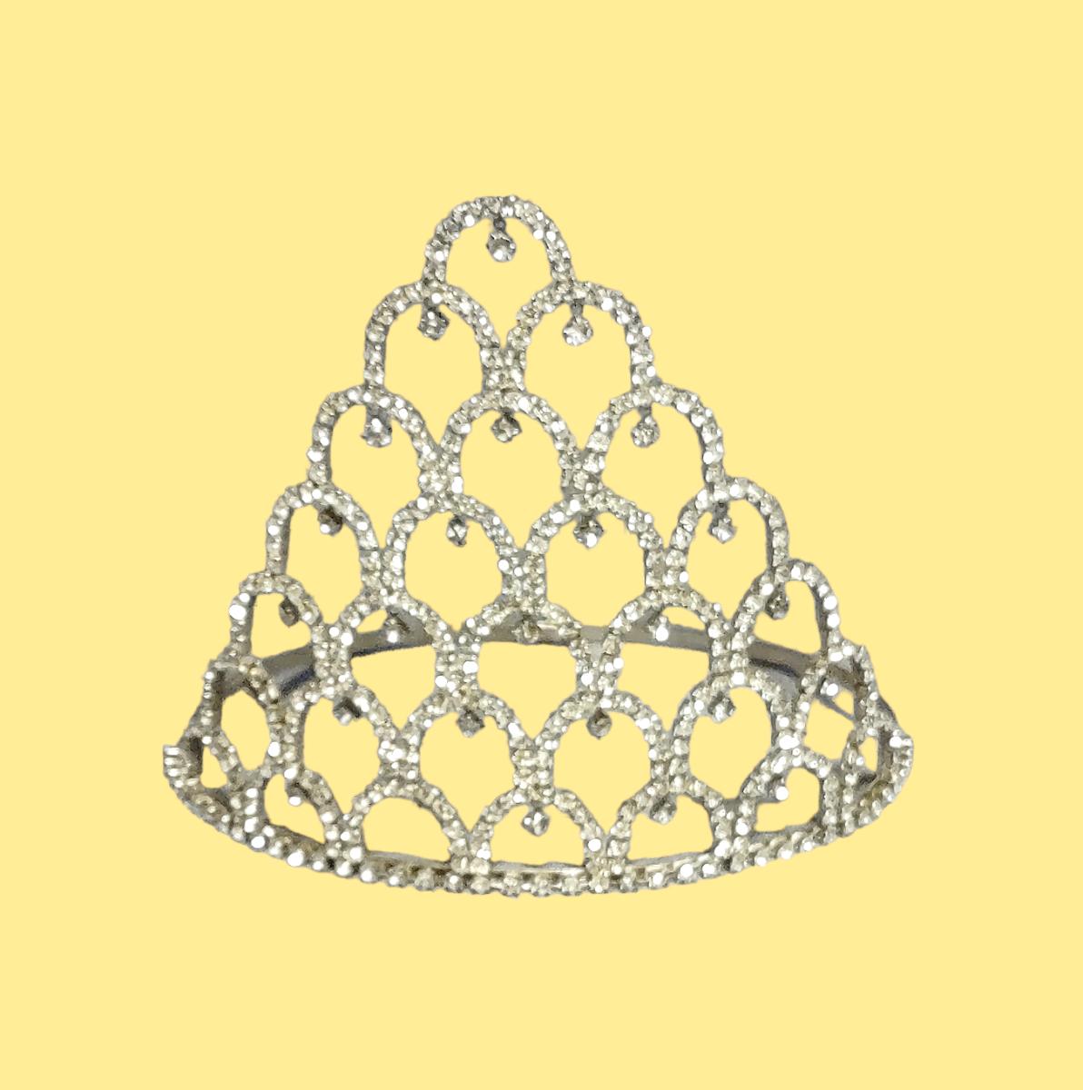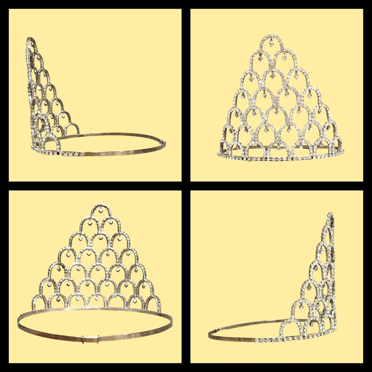 - Silver & Rhinestone Adjustable Crown 7"W x 6.5"H