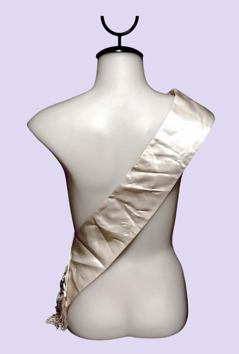 - White Satin w/Fringe & Black Printed Words - "Hawaiian Tropic Young Miss"