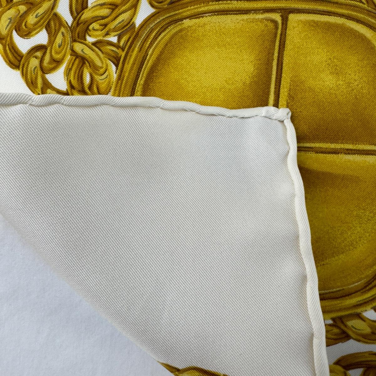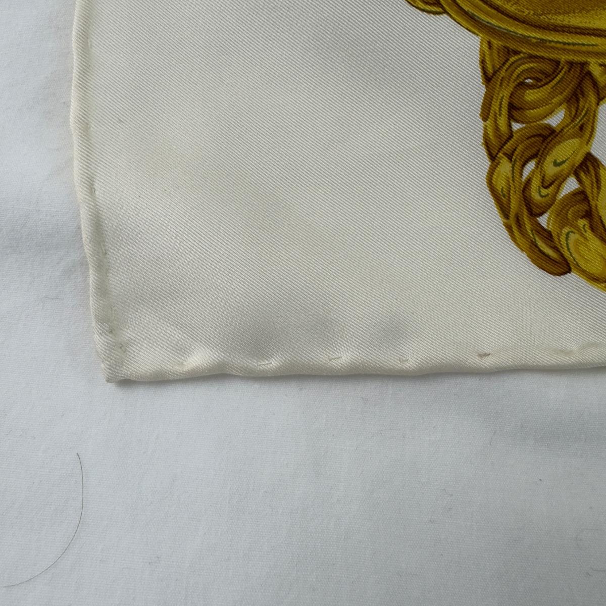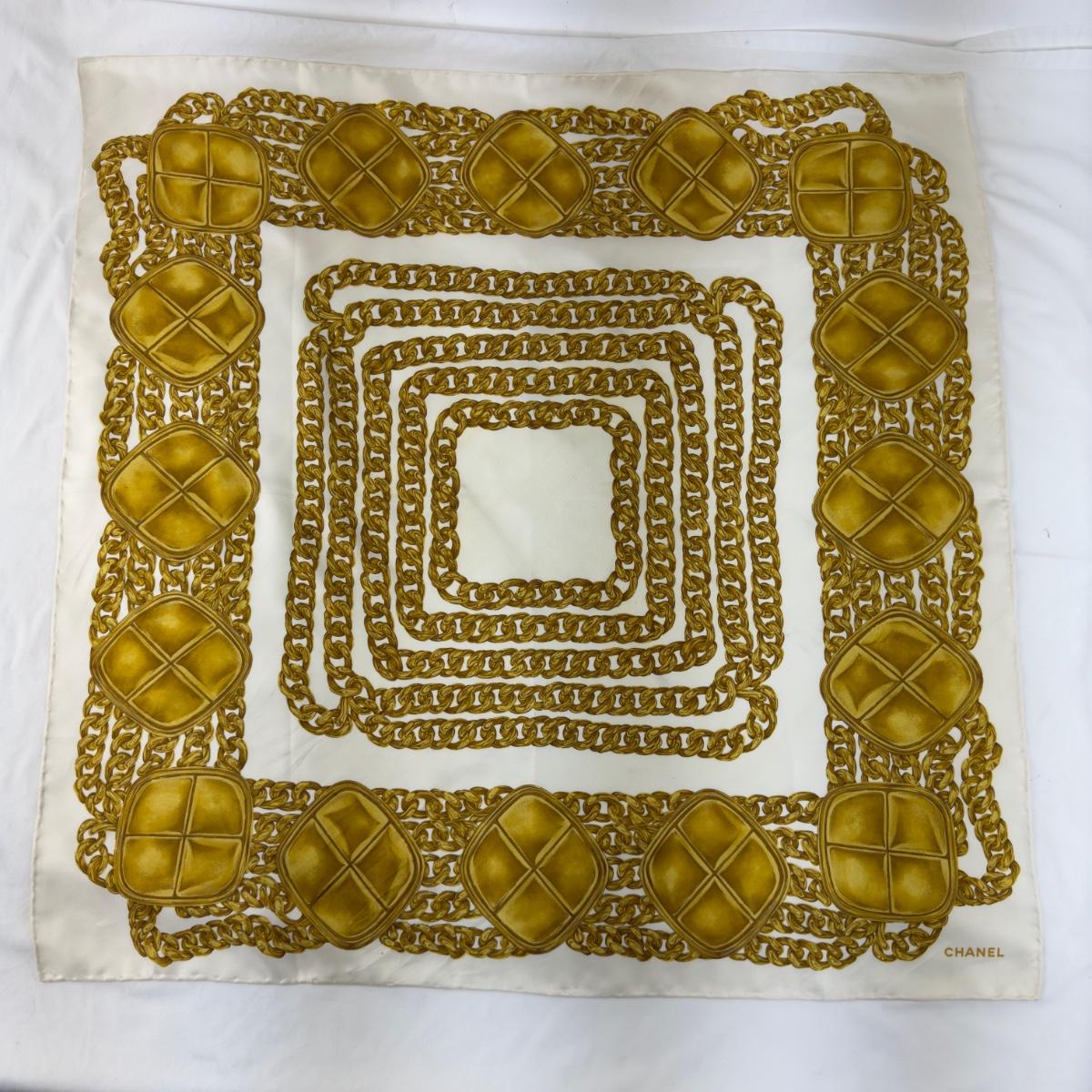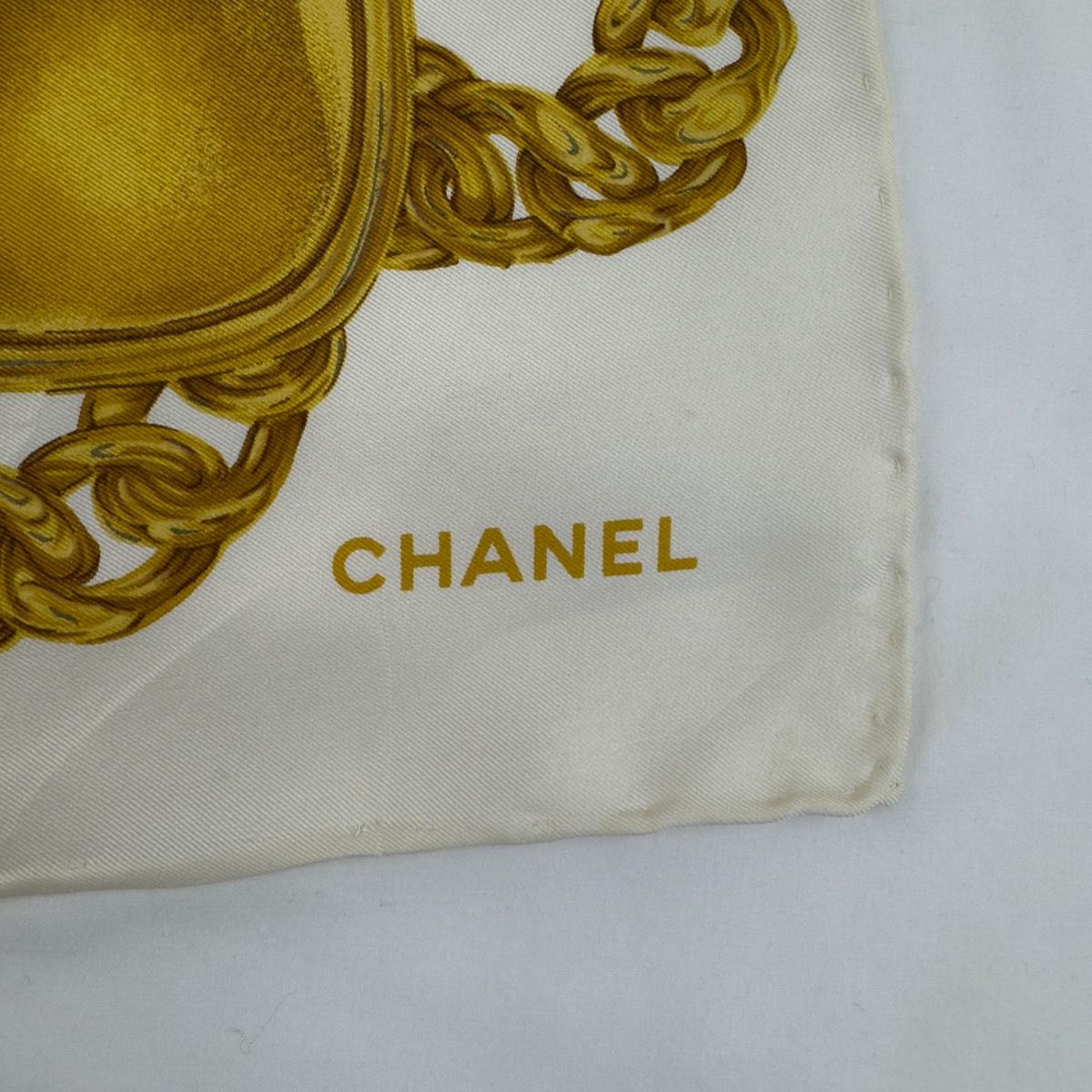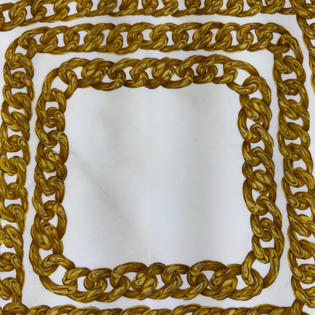 210 Authentic CHANEL White Background Gold Chain Design 100% Silk Scarf