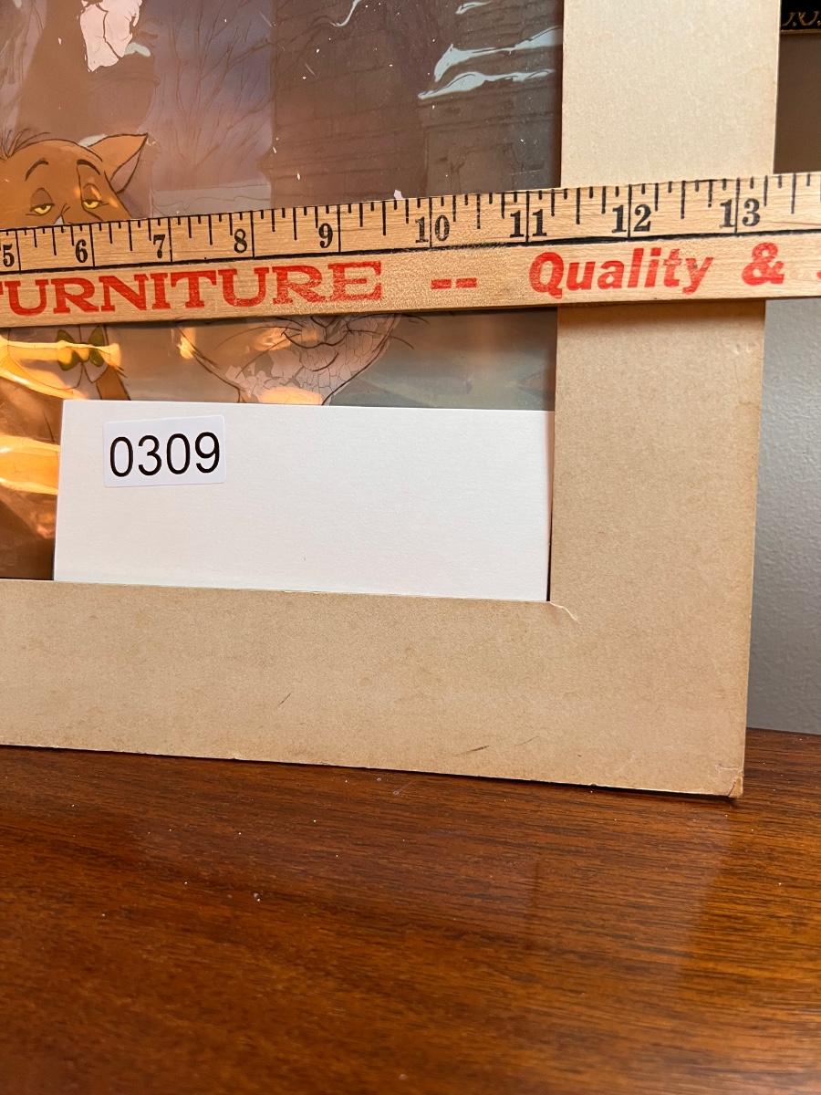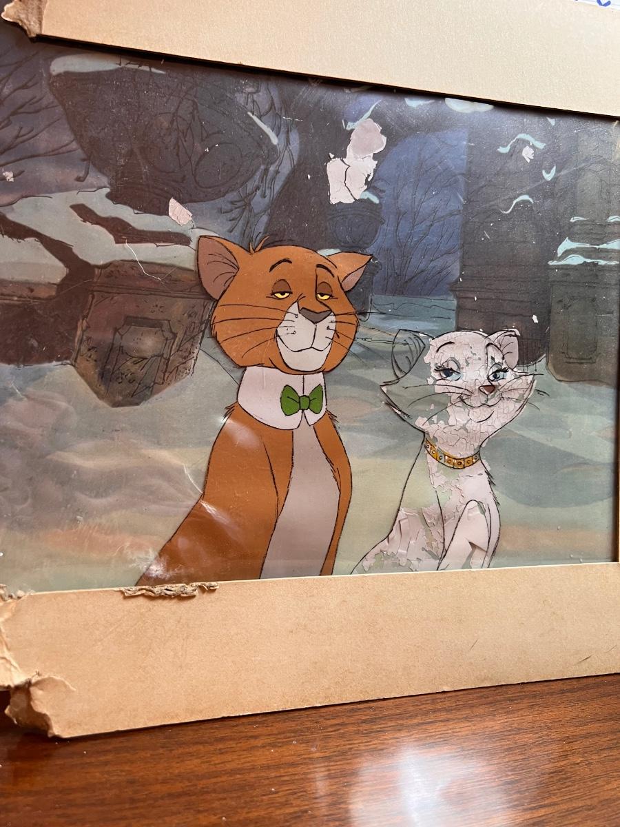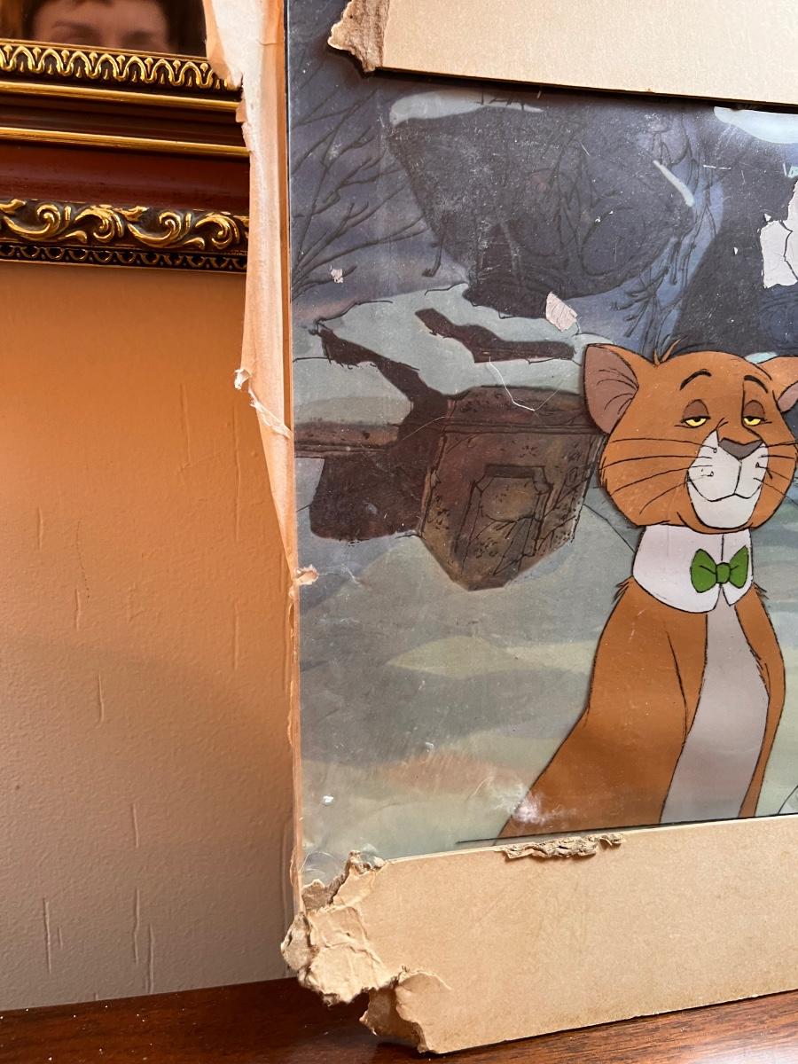 Walt Disney PRODUCTION. NOTE: it is damaged as shown in the pictures. Some of the paint has chipped and the mat is torn. AS IS