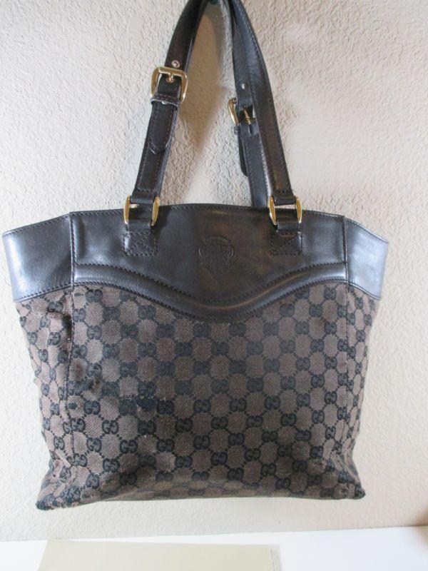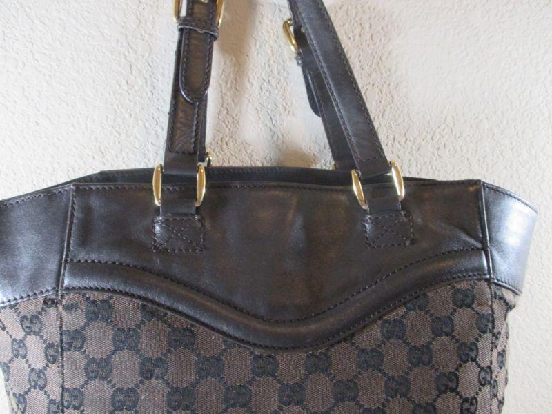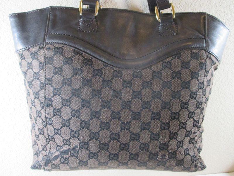 Authentic Gucci Leather and Cloth Handbag Brown ( purse has minor flaws for repair ) See all Pictures