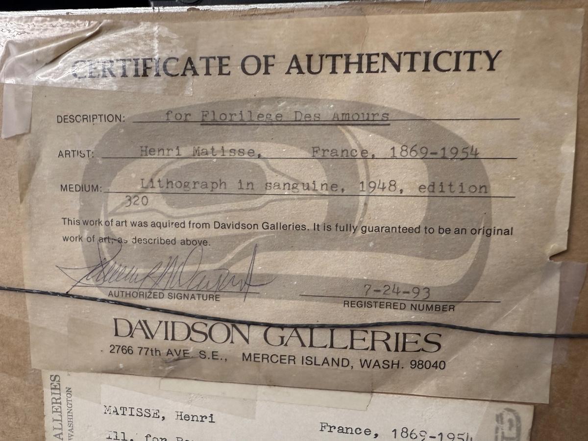 Certificate of Authenticity on the back from Davidson Galleries on Mercer Island, WA.