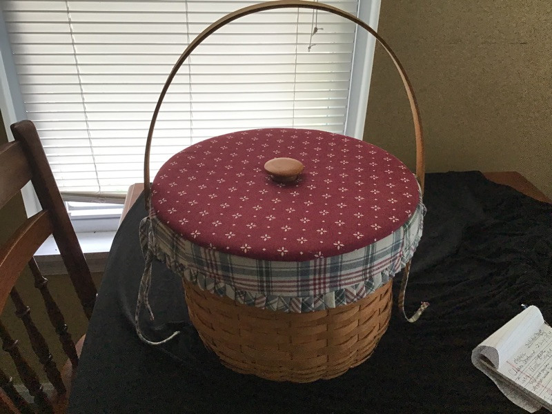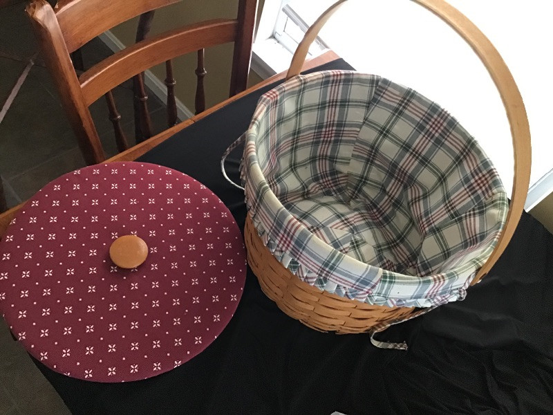 Longaberger basket with lid and fabric liner. 8 H x 14 W.