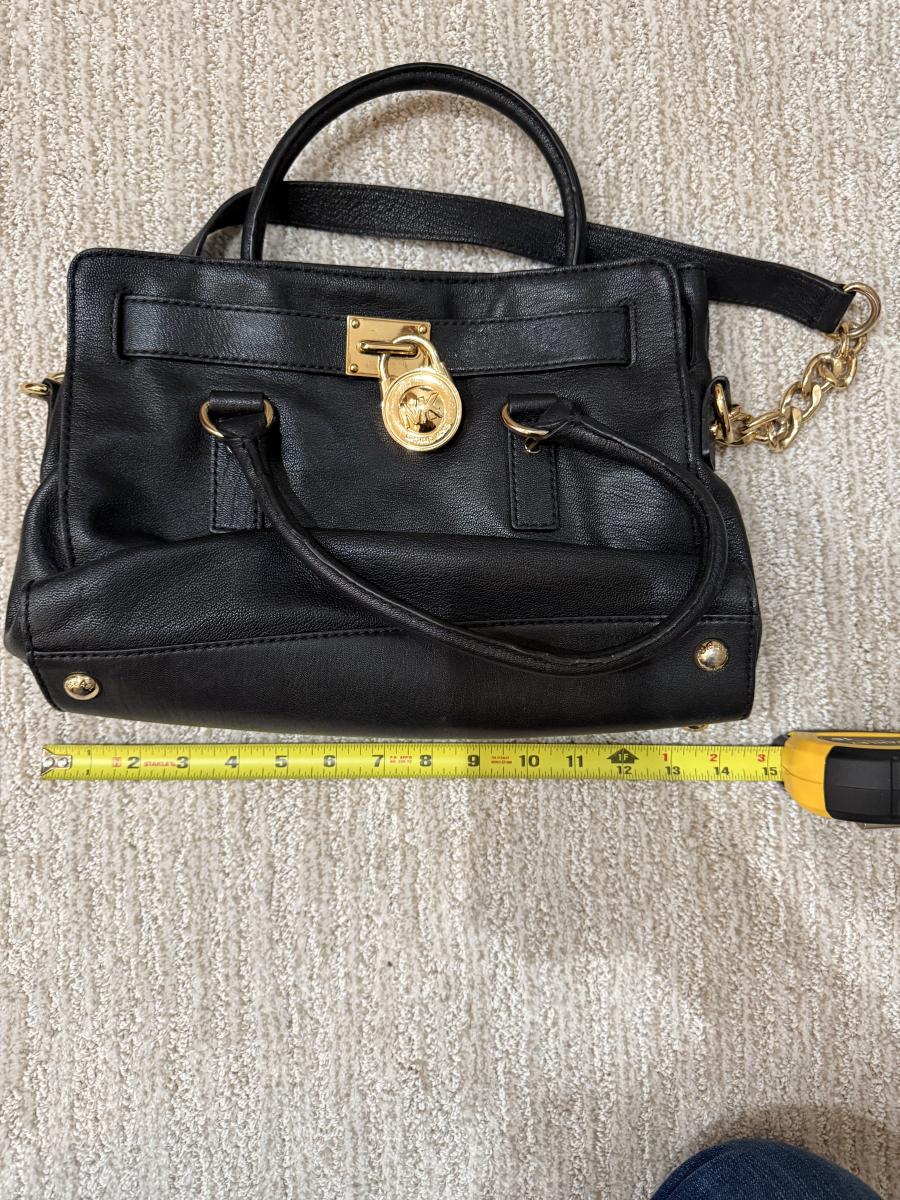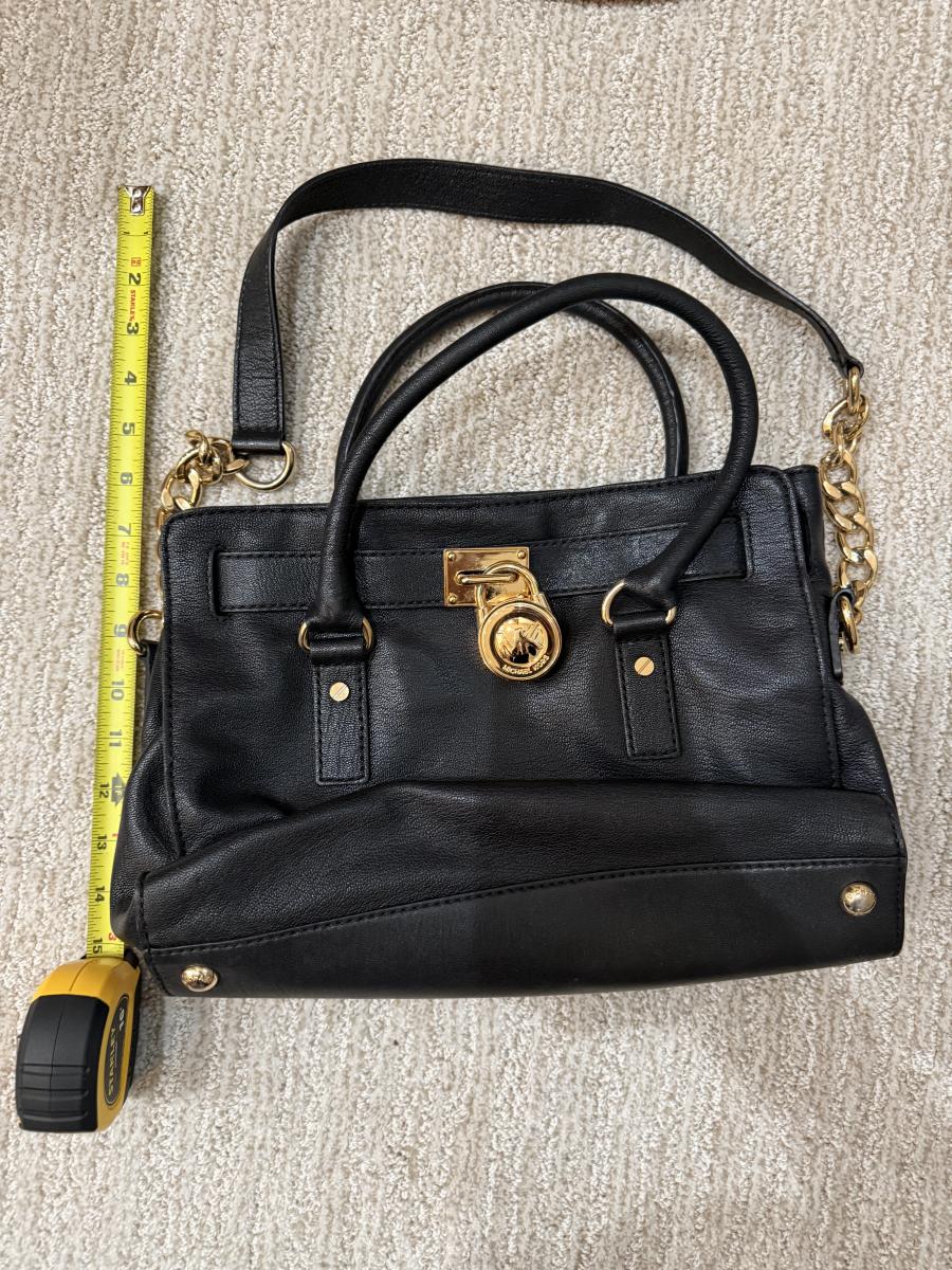 • Features: Signature MK padlock and key charm, leather top handles, and integrated chain/leather shoulder strap.