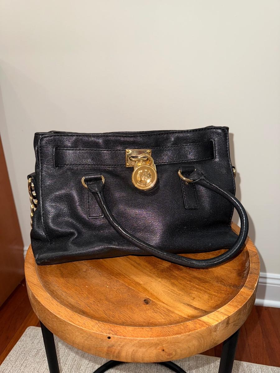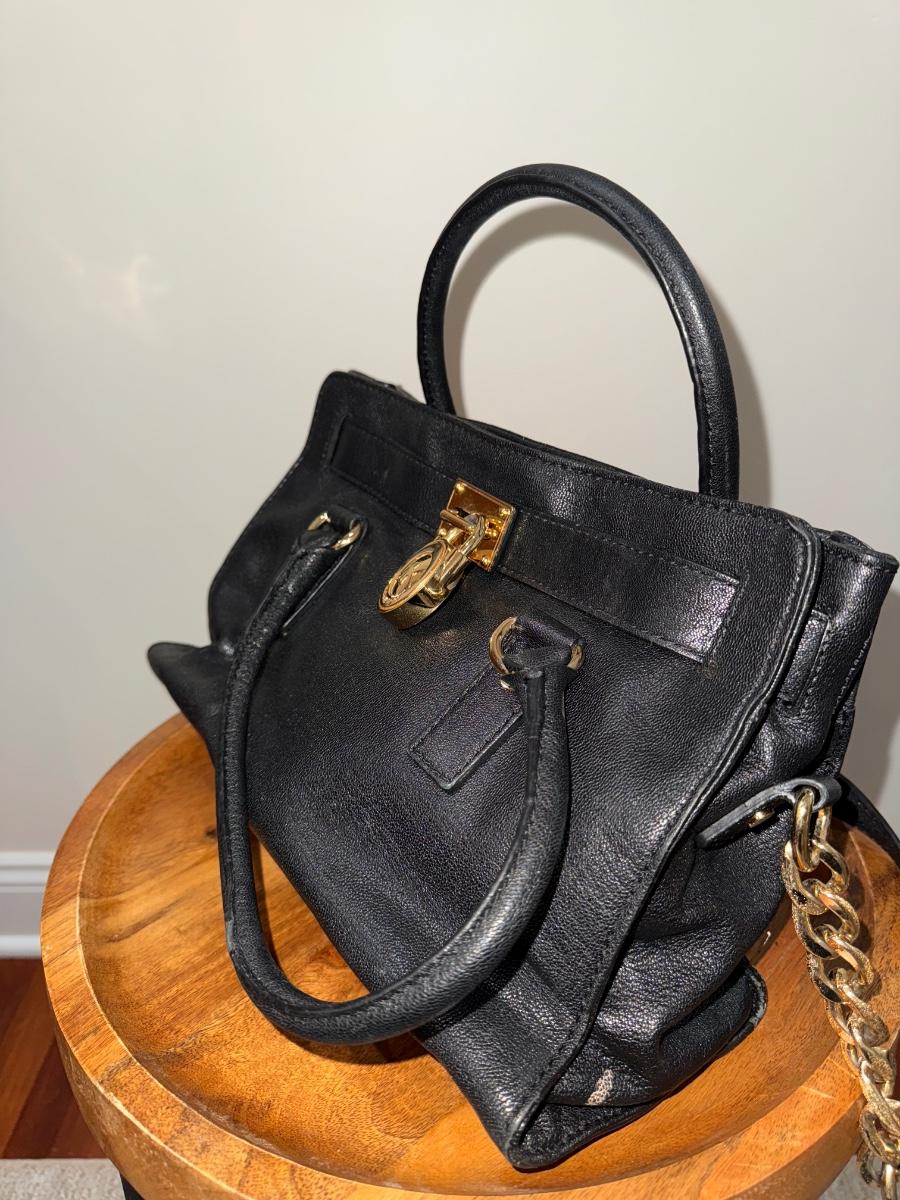 Elevate your everyday style with this iconic Michael Kors Hamilton Satchel. Crafted from high-quality, durable black pebbled leather with striking gold-tone hardware, this bag is a perfect blend of sophistication and functionality.