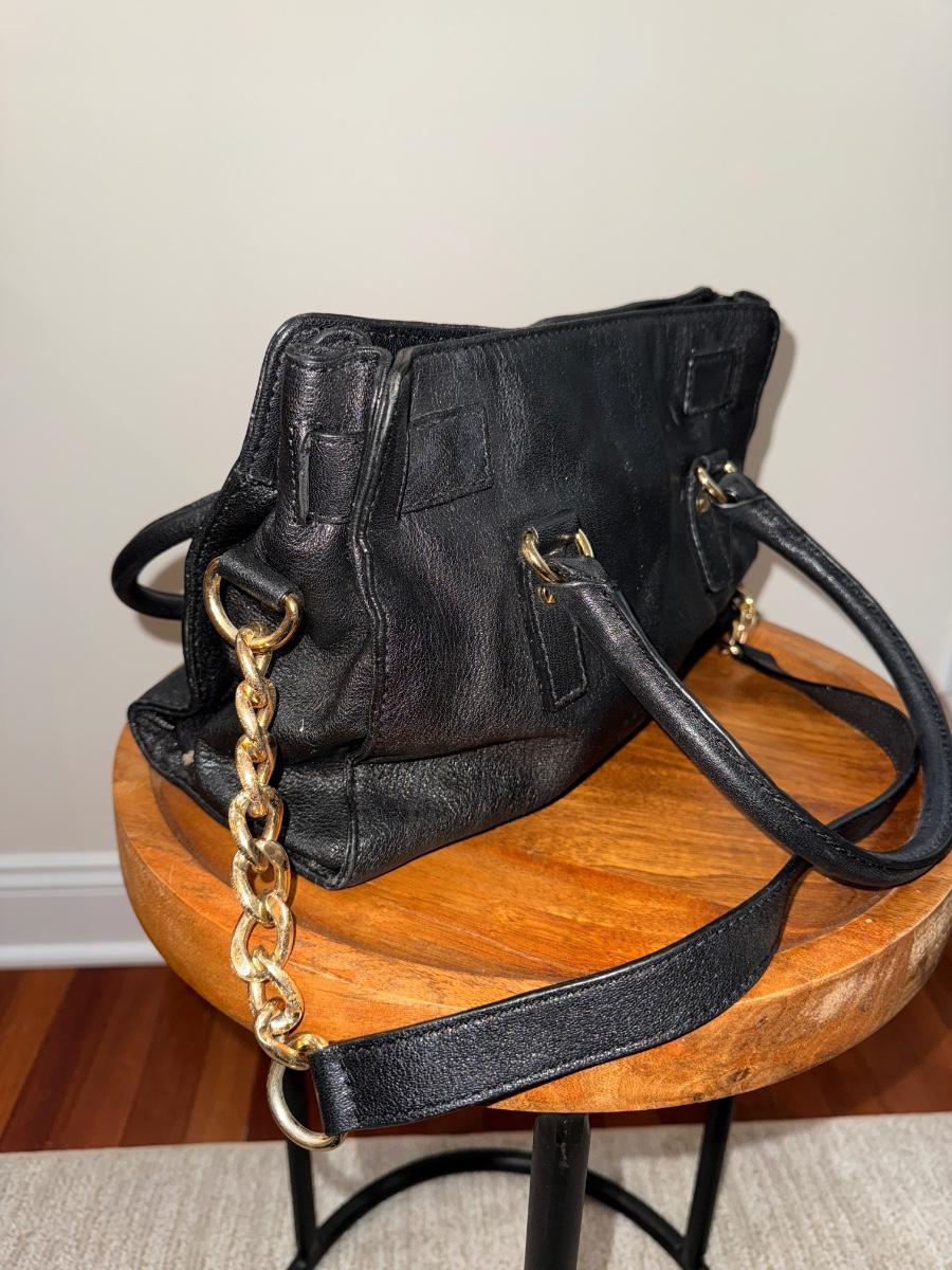 • Color: Black with Gold-tone hardware.