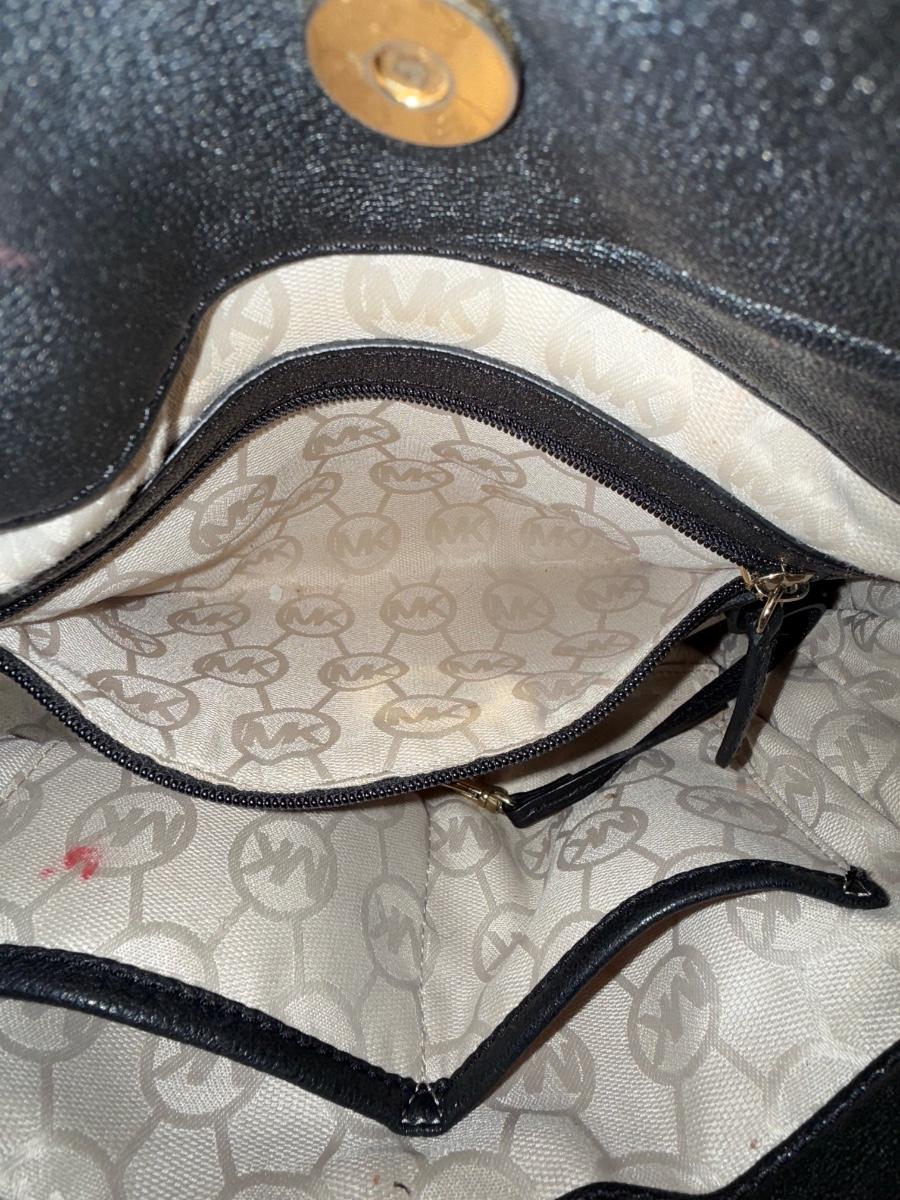 • Interior: MK monogram lining, one zip pocket, and multiple slip pockets for organization.