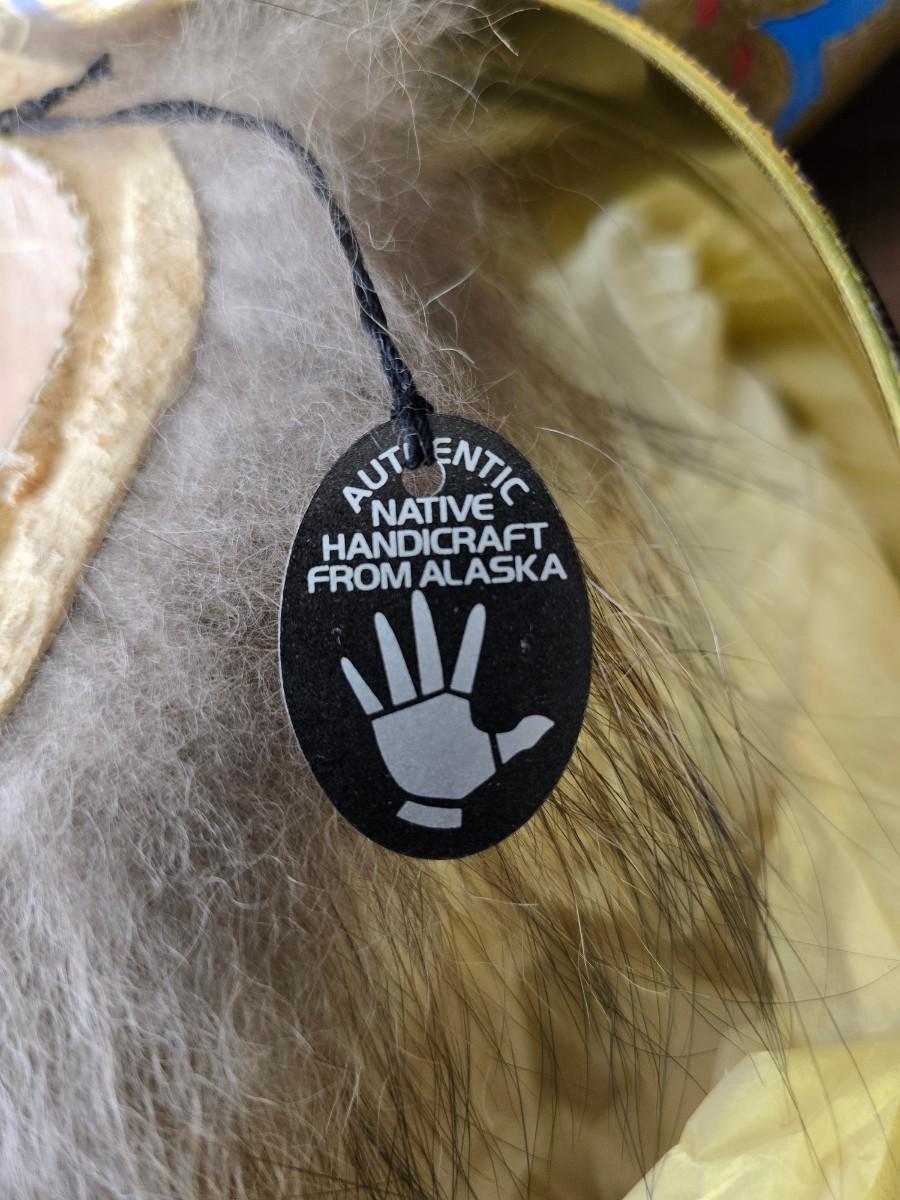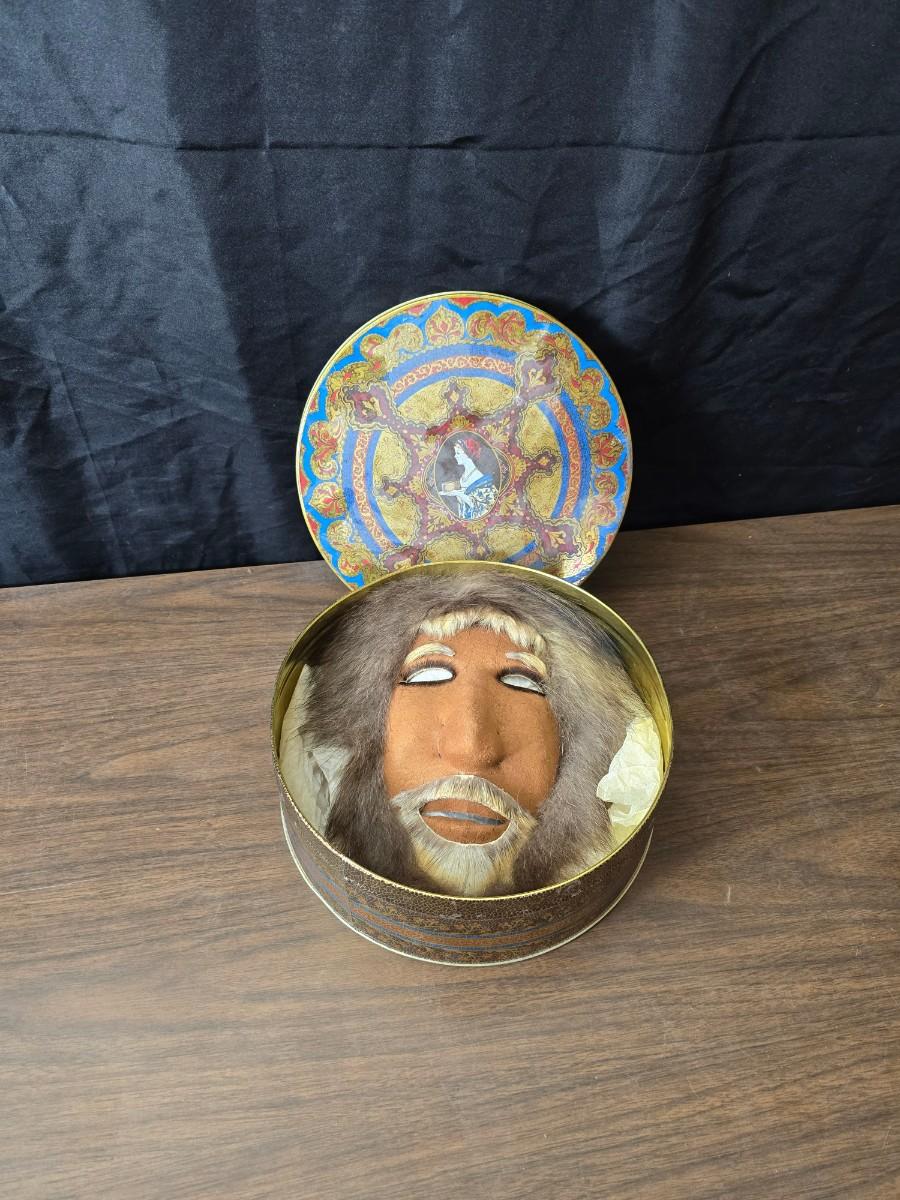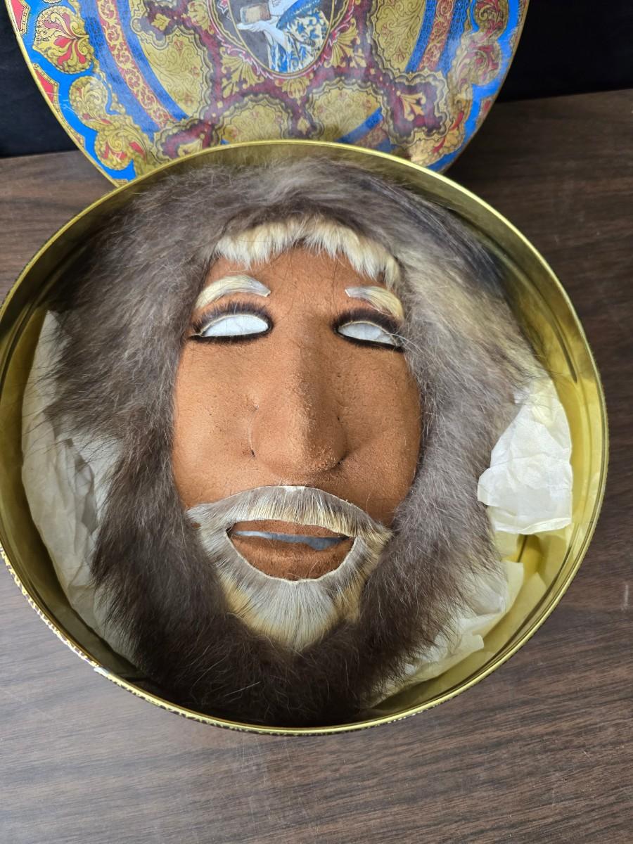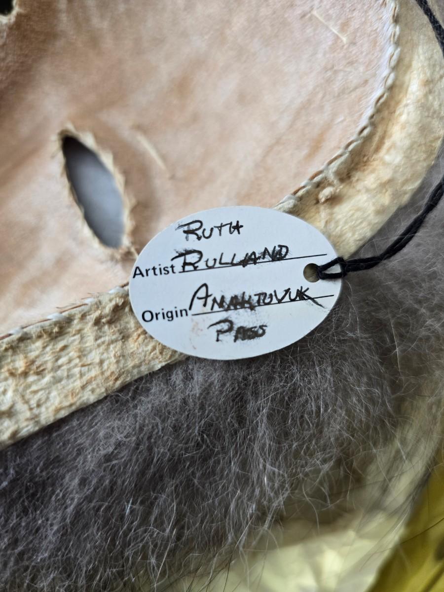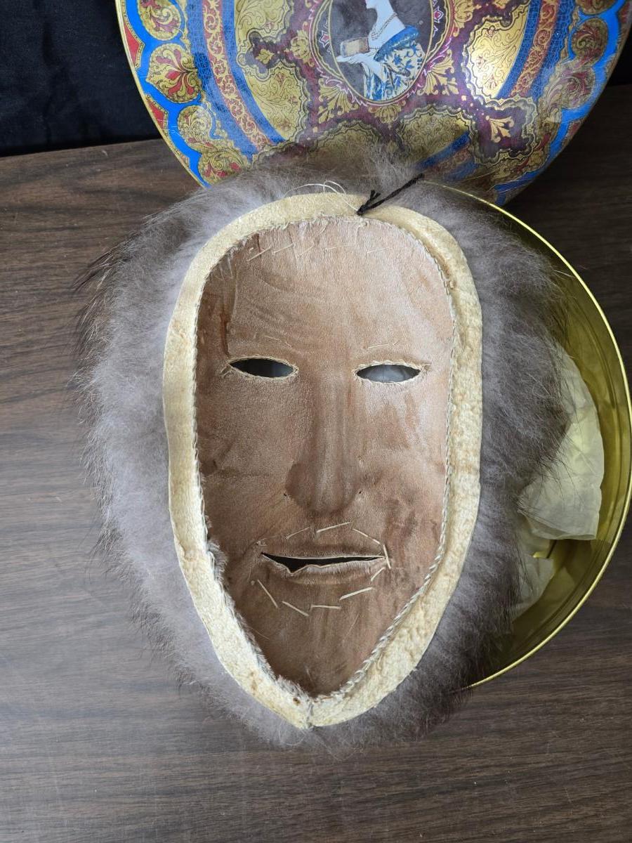 Authentic native handicraft Alaskan mask by Ruth Rulland - Anaktuvuk Pass in a protective tin