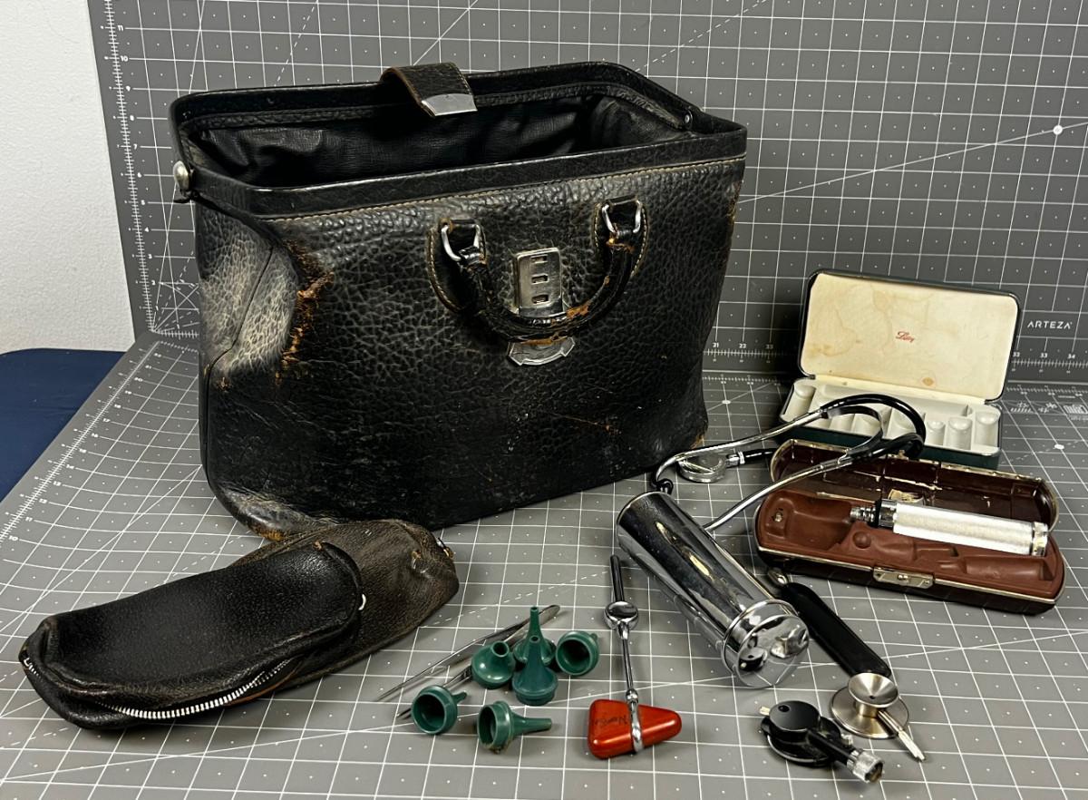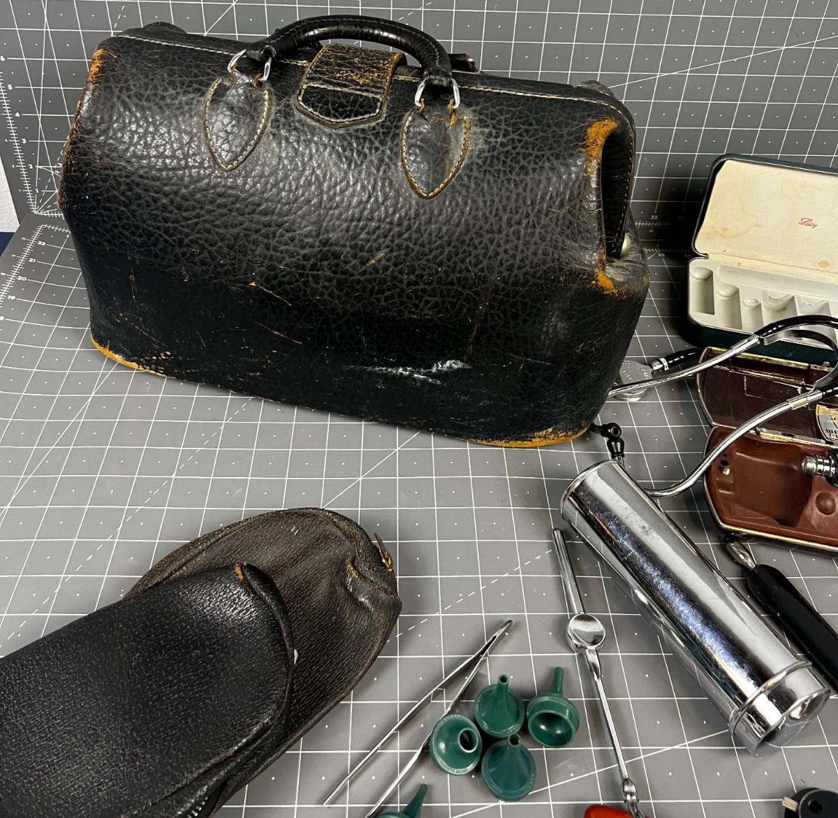 Authentic Old Doctors BLACK BAG, Leather, With Doctor Tools inside