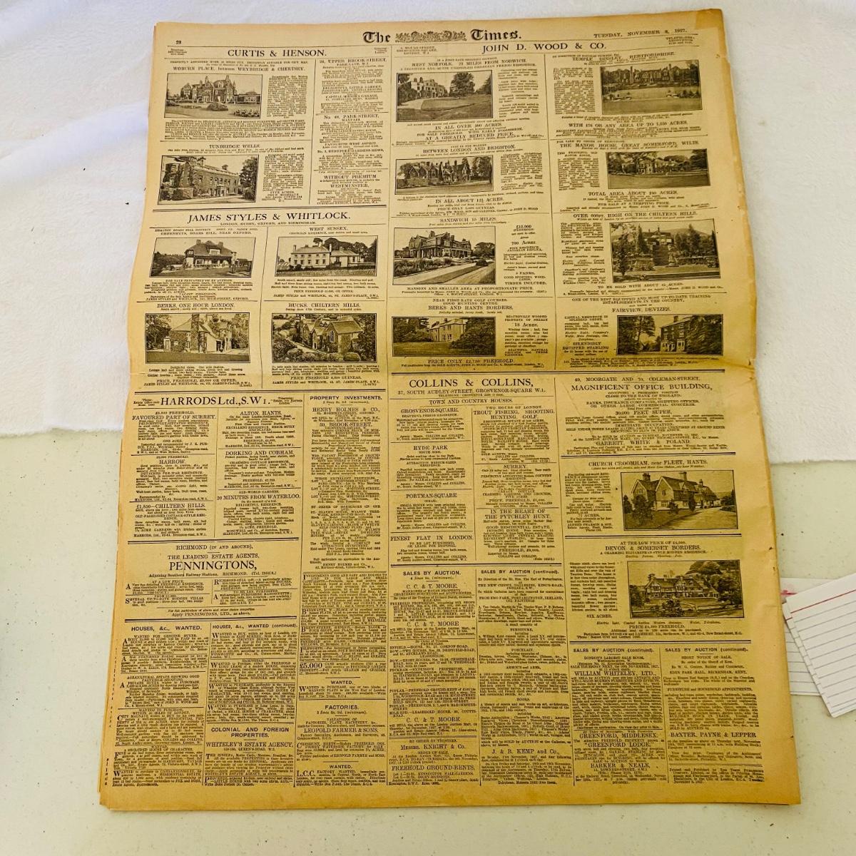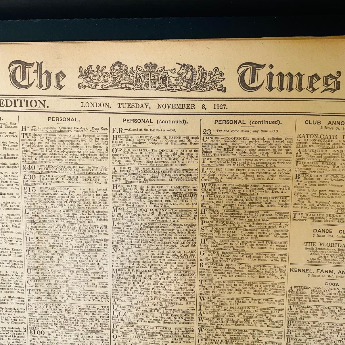 A Day to Remember authentic original Times newspaper. Late London Edition Tuesday, November 8, 1927. Good condition.