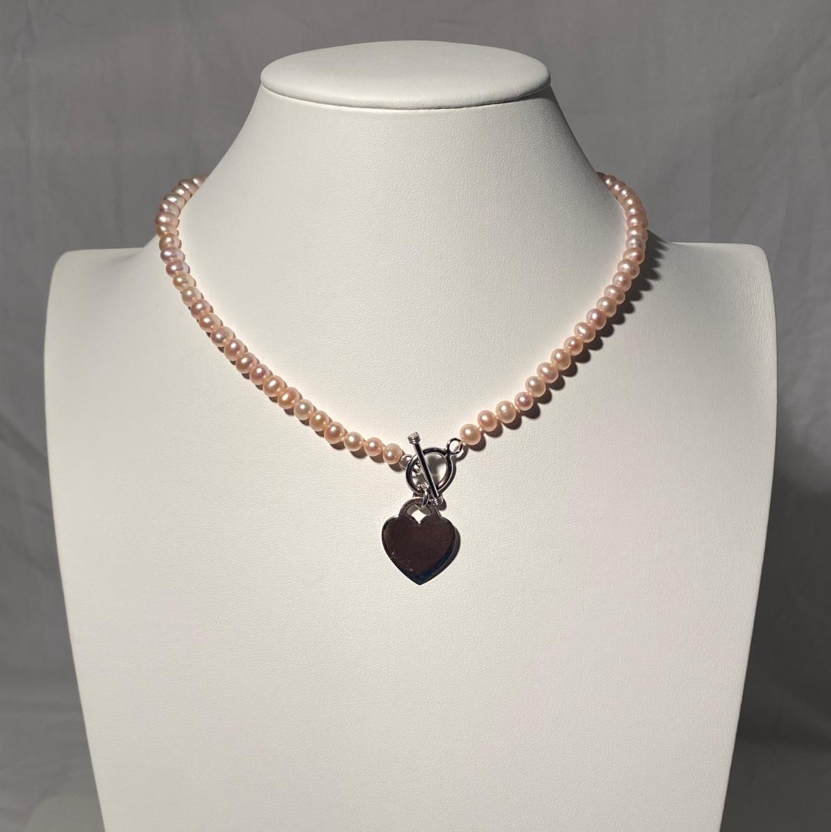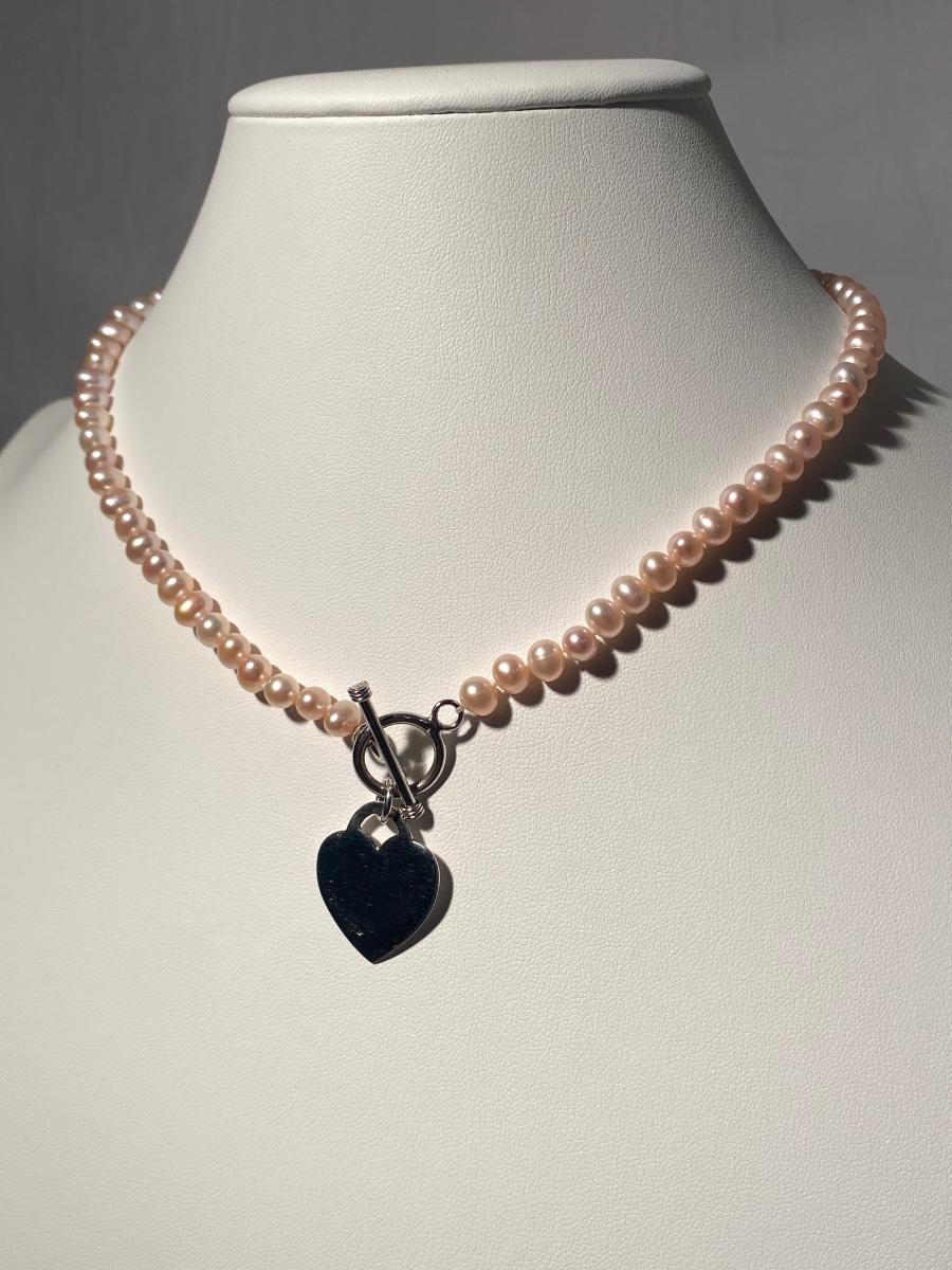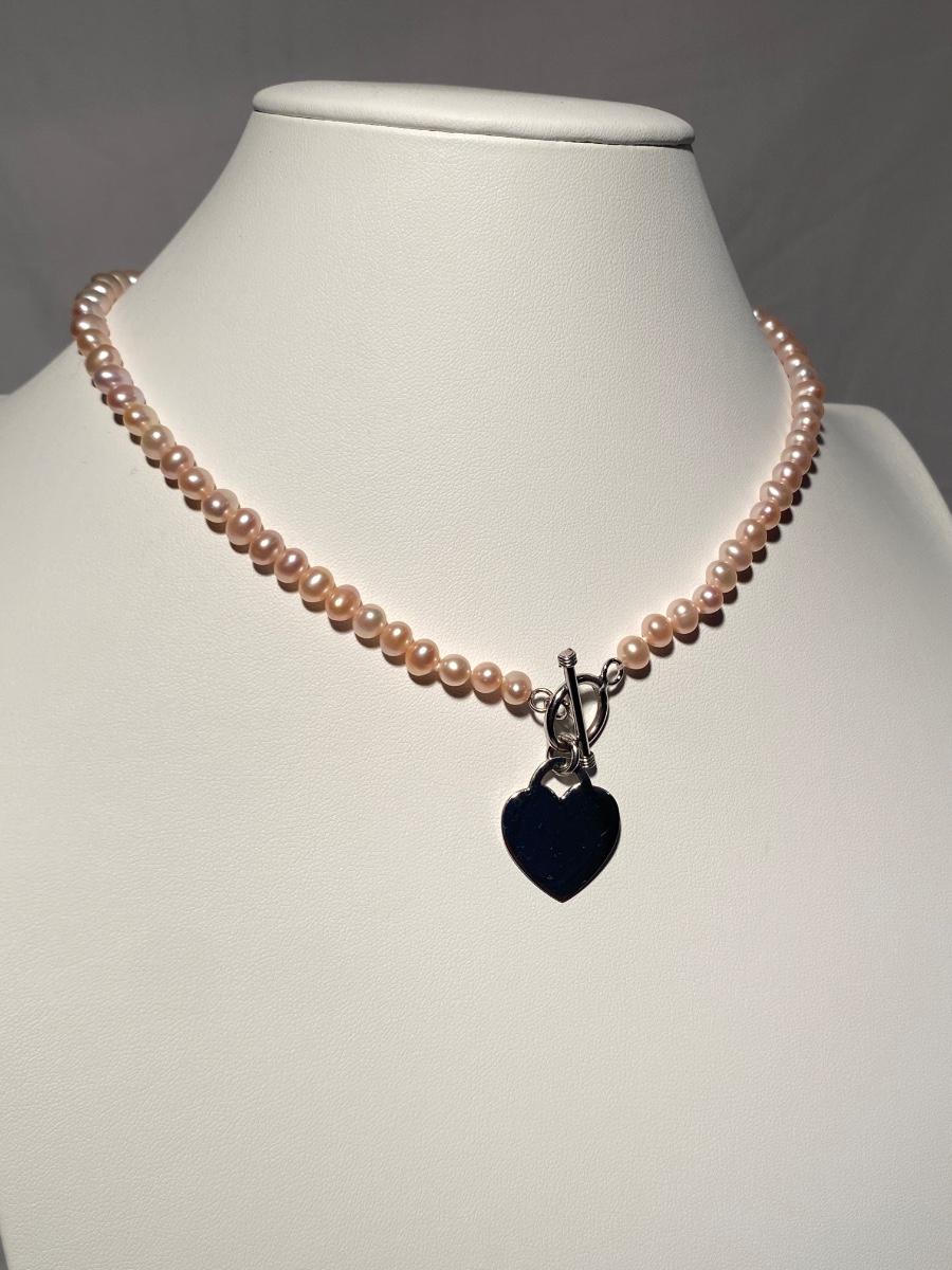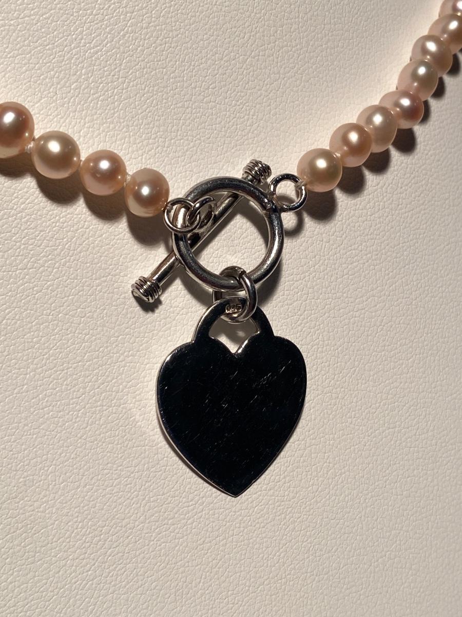 Authentic Pearl and Sterling Silver Heart Pendant Necklace