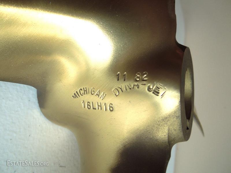 Dyna-Jet 16 RH 16 for outboard motor. Includes original service ID tag. Some residue on shaft from rubber band. Amazing find and like new. These have a shipping option. Be forewarned that they weigh about 20 lbs or more. Buyer pays shipping.
