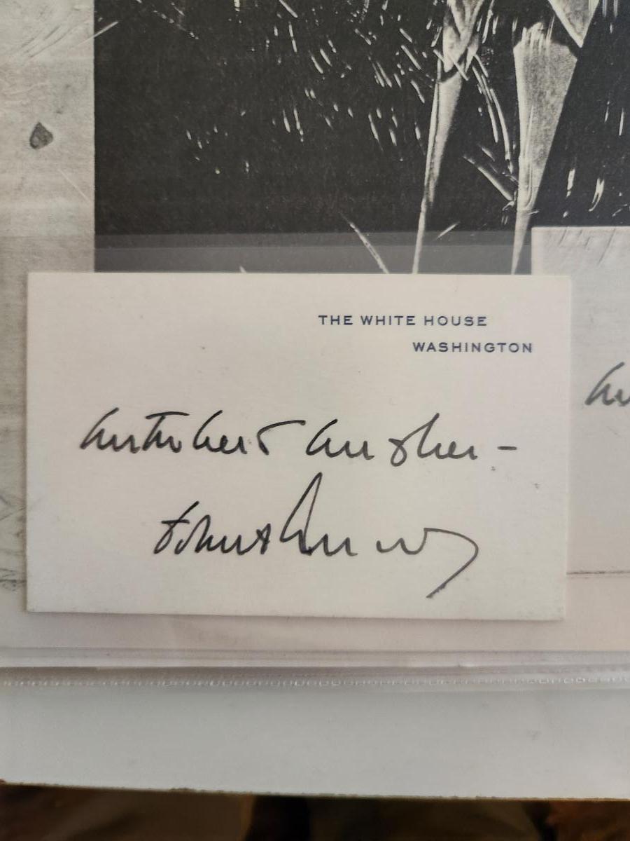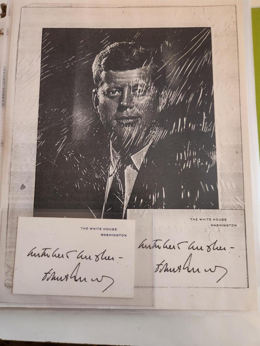 This auction lot is for what we believe to be an Authentic Signature of President John F. Kennedy. We found this White House card signed by President Kennedy in Fr. McGill's files along with the photocopied picture that shows the same signature card. Based on previous experience with Kennedy autographs we believe it to be genuine and authentic.