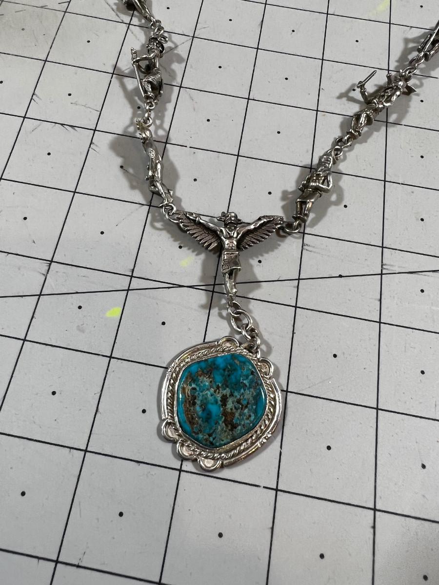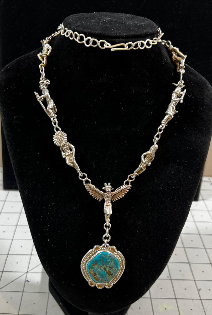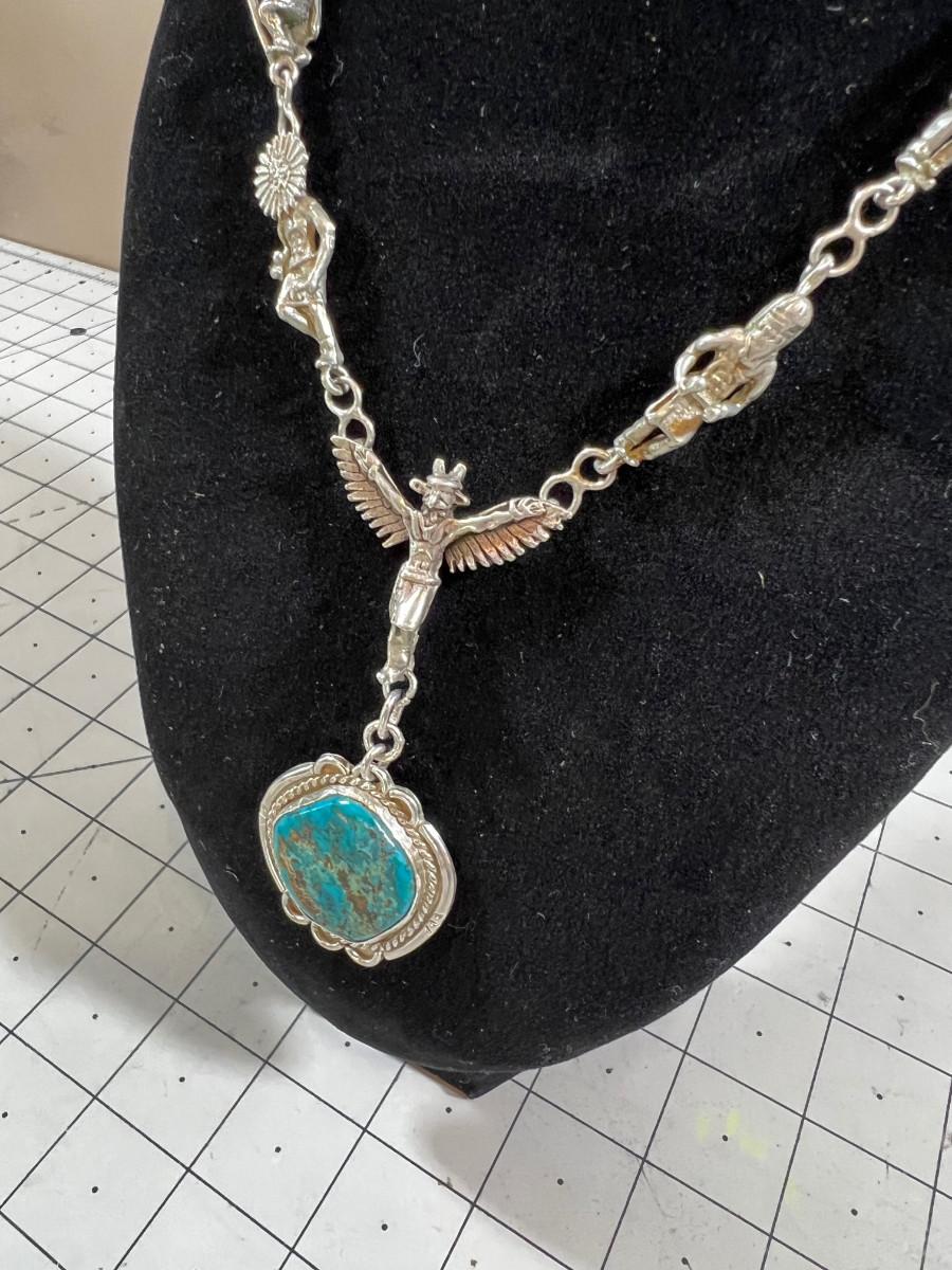 AUTHENTIC Thunderbird, Kachina Pendant in Silver with Turquoise