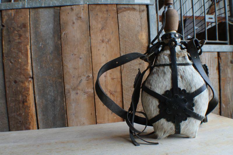 Lot #254: Authentic Vintage Fur Lined Canteen w/ Wood Cork