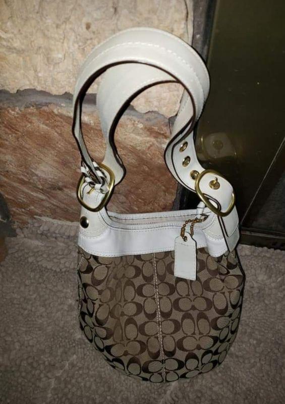 Authentic White and Brown BOHO coach bag