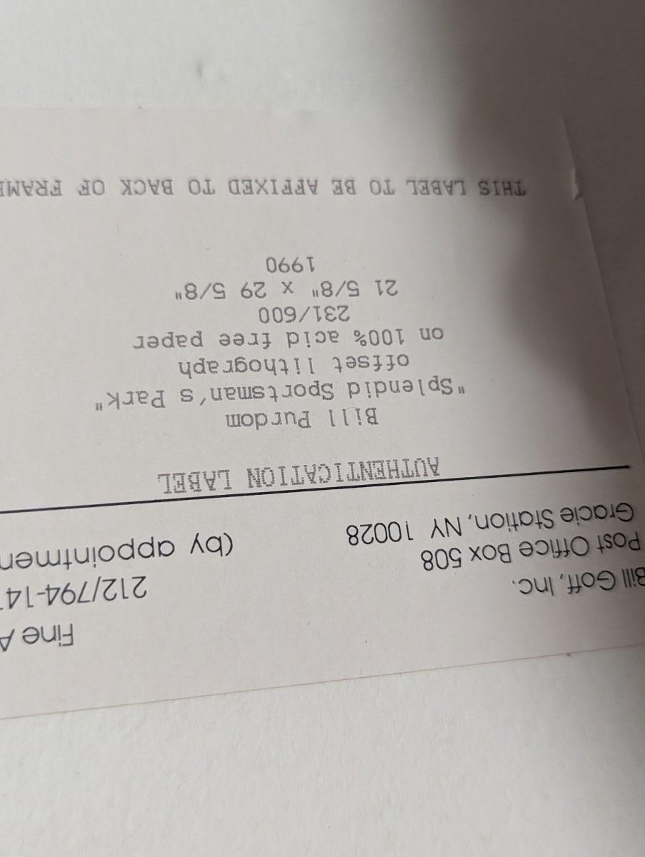 Authentication Label Bill Purdom "Splendid Sportsman's Park" Offset Lithograph 1990