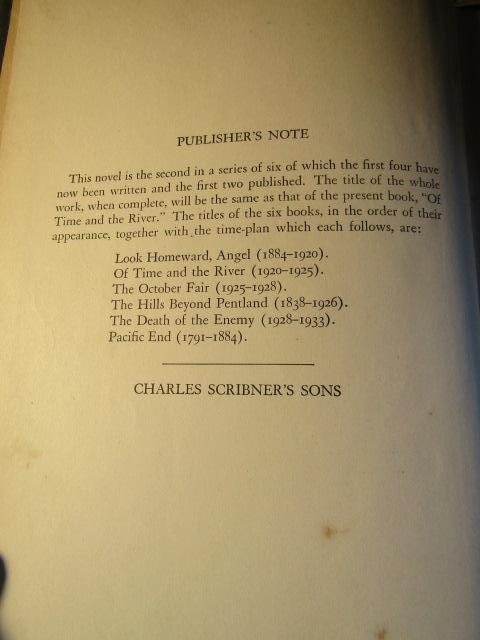 Author Signed Copy 'Of Time and the River' by Thomas Wolfe