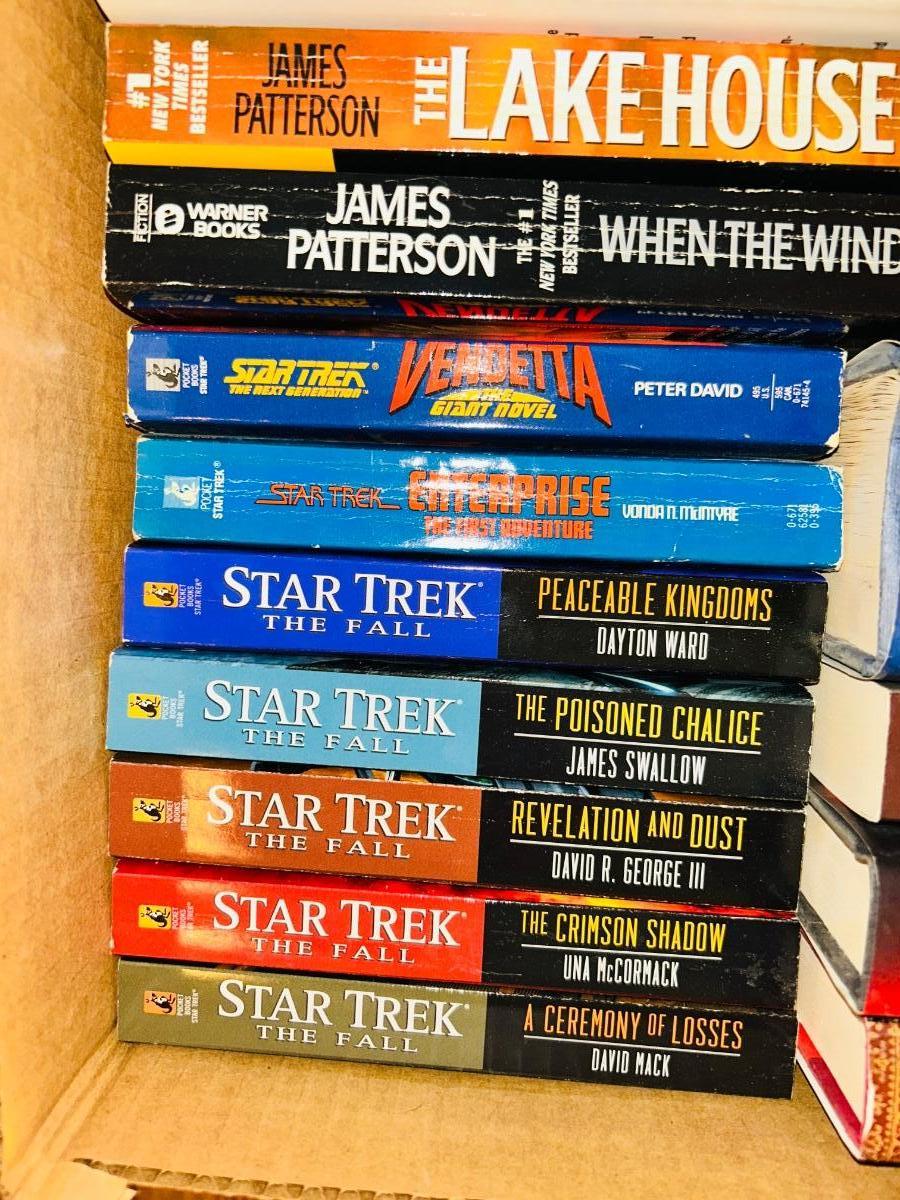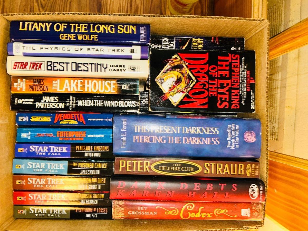AUTHORS SUCH AS JAMES PATTERSON, STEVEN KING, GENE WOLFF AND AN ASSORTMENT OF STAR TREK BOOKS