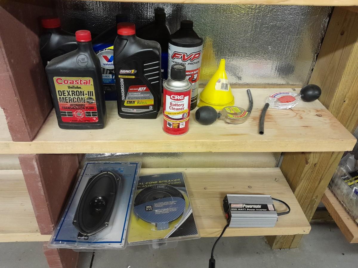 AUTO CHEMICALS, POWERMATE INVERTER AND 2 SPEAKERS