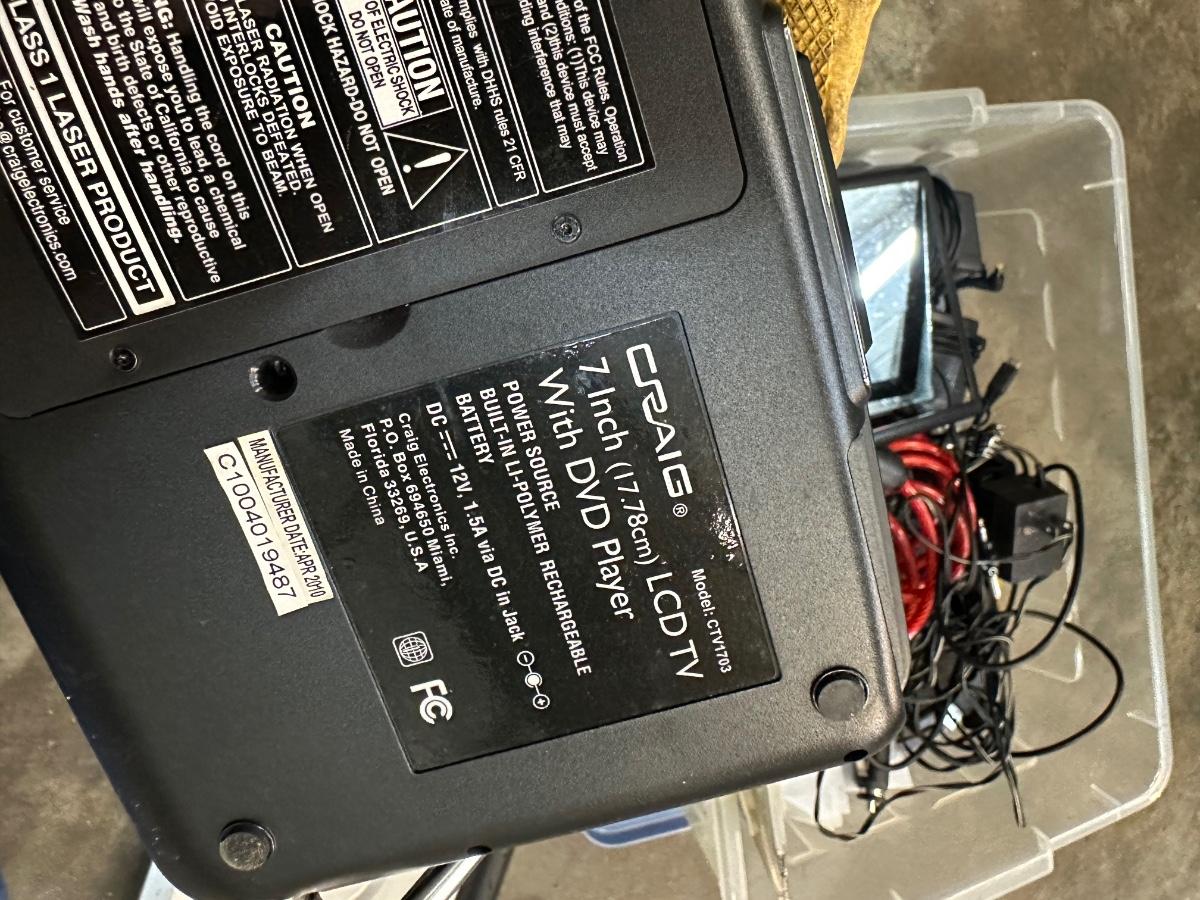 AUTO ELECTRONIC LOT INCLUDES ROHENT WIRELESS REARVIEW CAMERA KIT, CRAIG 7 IN LCD TV W/DVD PLAYER, COBY PORTABLE DVD PLAYER AS PICTURED