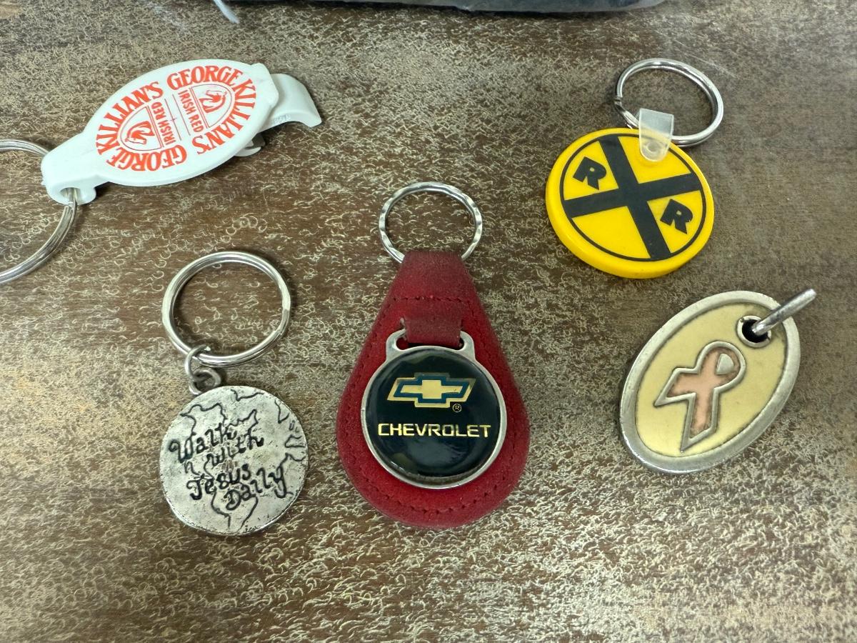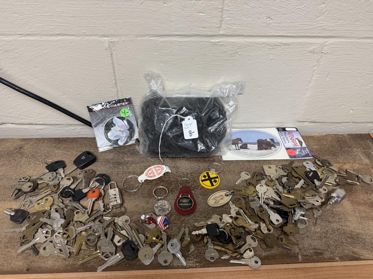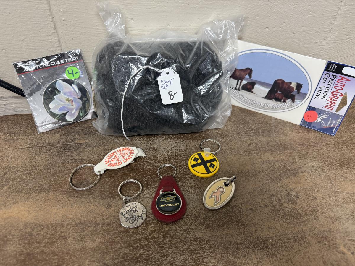Cargo net, vintage key chains, keys for house, locks, & vehicles, more