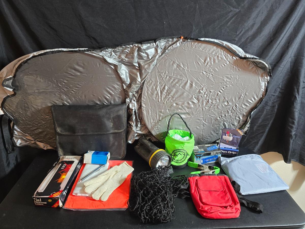 Auto mobile organization & care - Windshield shades - Cargo net - flashlights and more