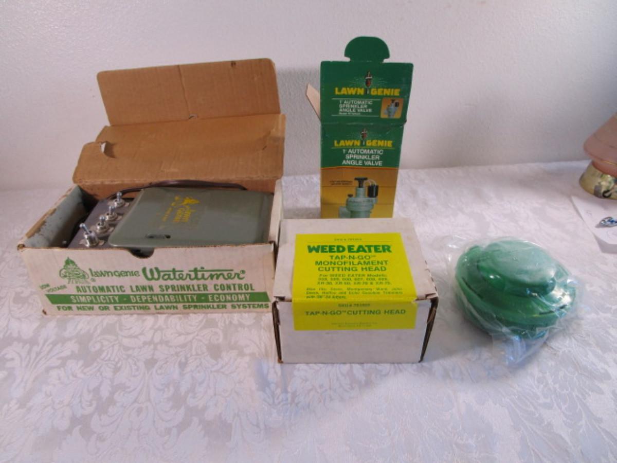 Auto sprinkler timer, new auto sprinkler angle valve, new weed eater heads